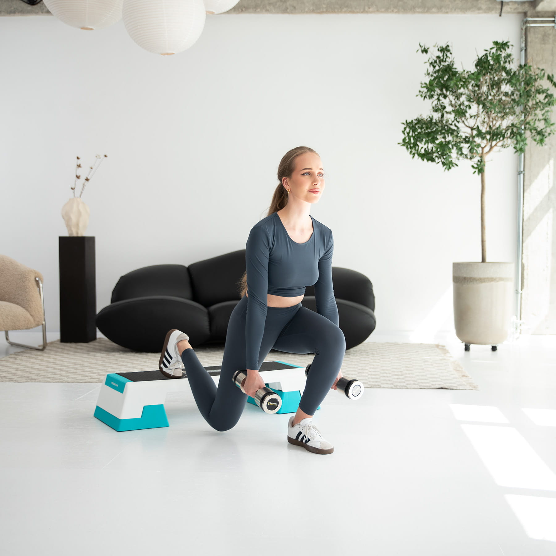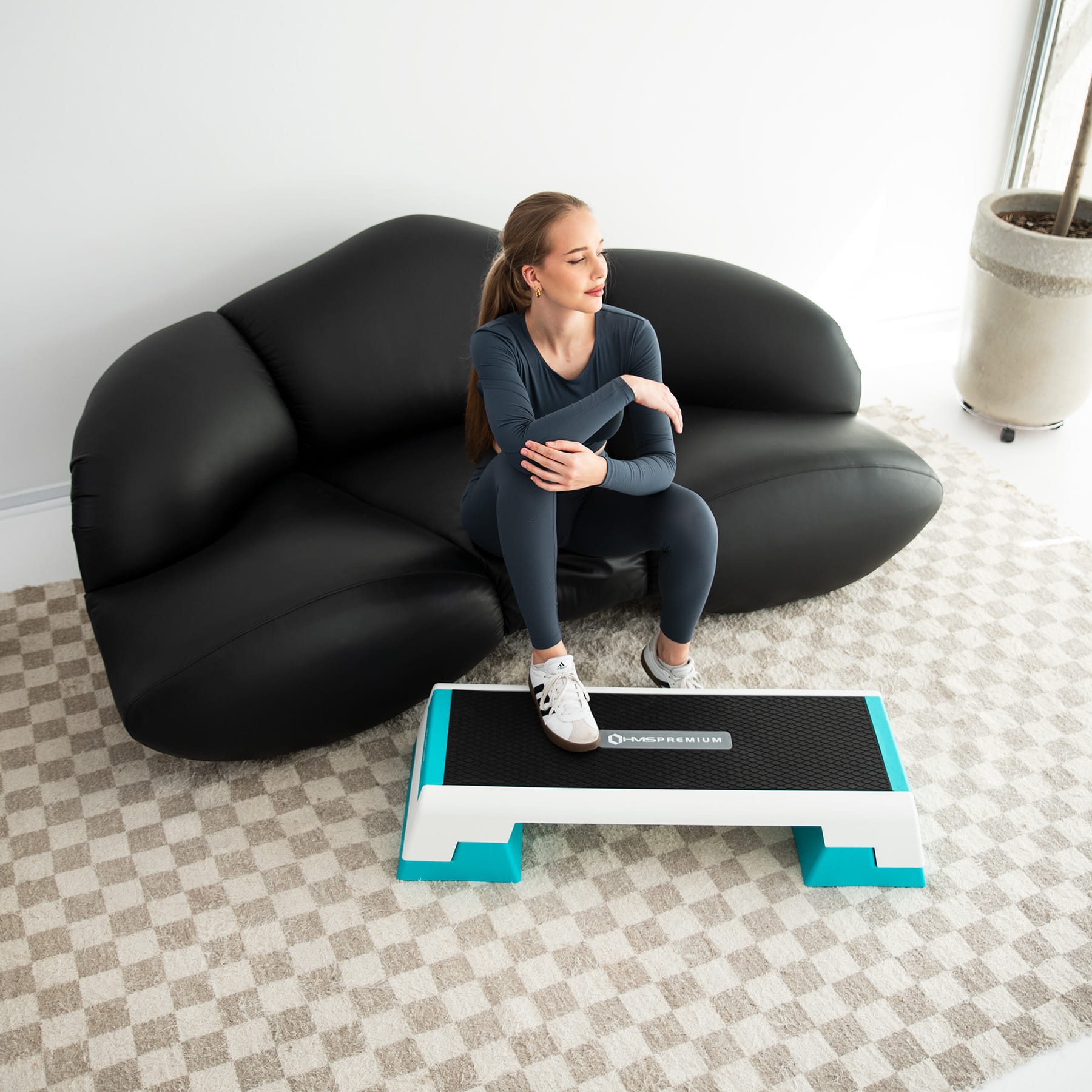 Step wyposażono w antypoślizgową powierzchnię, zapewniającą pewność ruchów nawet podczas dynamicznych ćwiczeń. Gumowe stopki zapobiegają ślizganiu się stepu na różnych powierzchniach, gwarantując stabilność i bezpieczeństwo użytkowania.