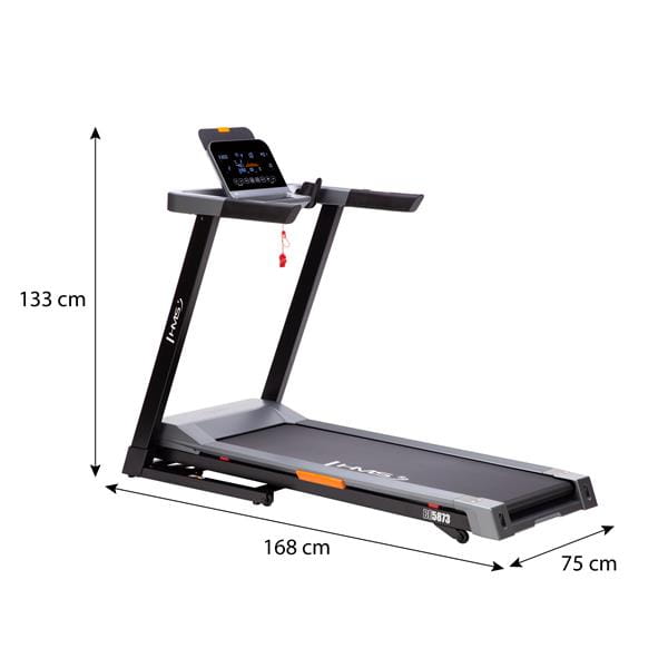 Bieżnia BE5873 od HMS to funkcjonalne urządzenie do domowego treningu, które łączy wygodę użytkowania z nowoczesnymi rozwiązaniami. Dzięki regulacji prędkości i nachylenia, mocnemu silnikowi oraz licznym programom treningowym, model BE5873 pozwala na wszechstronny i efektywny trening.