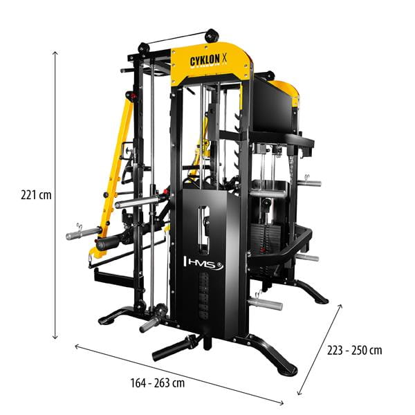 Cyklon X został stworzony z najwyższej jakości stali, co zapewnia jego niezwykłą wytrzymałość i trwałość, nawet przy intensywnym użytkowaniu. Stabilna podstawa gwarantuje pełne bezpieczeństwo podczas każdego ćwiczenia, eliminując ryzyko chwiania się maszyny. Wyciągi i suwnica poruszają się płynnie i bezszelestnie dzięki precyzyjnie dobranym łożyskom.