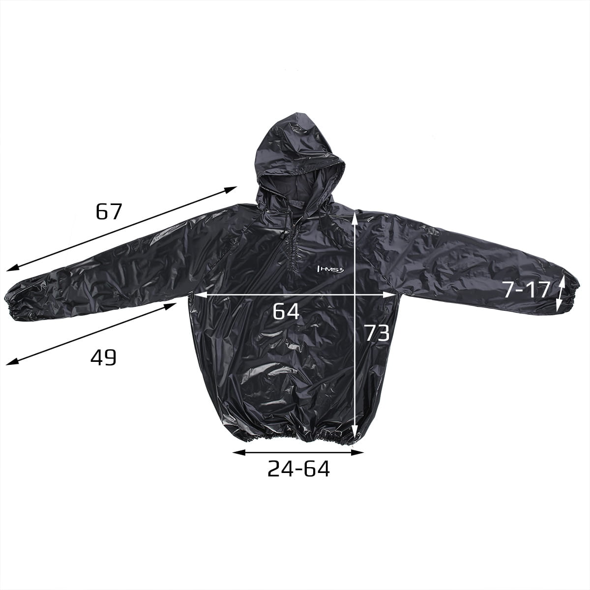 DDSS12 HMS to sauna dres. Świetne rozwiązanie, zwłaszcza dla zawodników sportów walki. Sprawdzi się, w trakcie przygotowań, kiedy zawodnik chce w szybkim czasie zmniejszyć ciężar swojego ciała. Trenując w dresie powodujemy, że znacznie szybciej wzrasta temperatura ciała. Skutkiem tego, dużo bardziej się pocimy, więc wytrącamy wodę z organizmu. Jest to sposób, na końcowe osiągnięcie pożądanej wagi i w bardzo szybkim tempie, zrzucenie 2-3 kilogramów. Sprawdzi się również, jako utrudnienie treningu. Zwiększenie temperatury podczas treningu sprawia, że organizm więcej energii, poświęca na schłodzenie ciała, tym samym ćwiczenia stają się, dużo bardziej wyczerpujące.