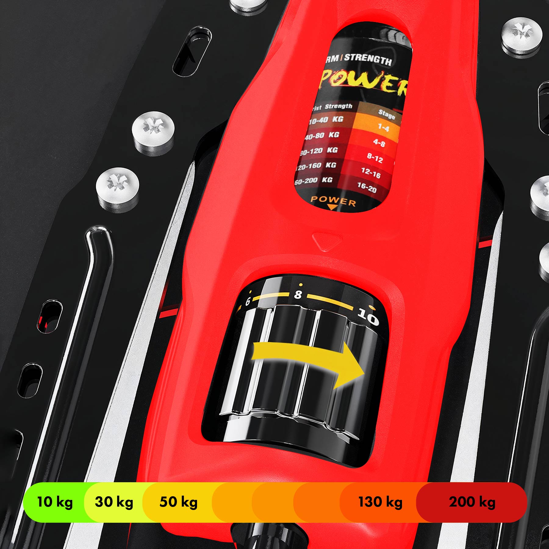 - Szeroki zakres oporu 10–200 kg – dopasujesz trening od rozgrzewki po mocny wycisk.