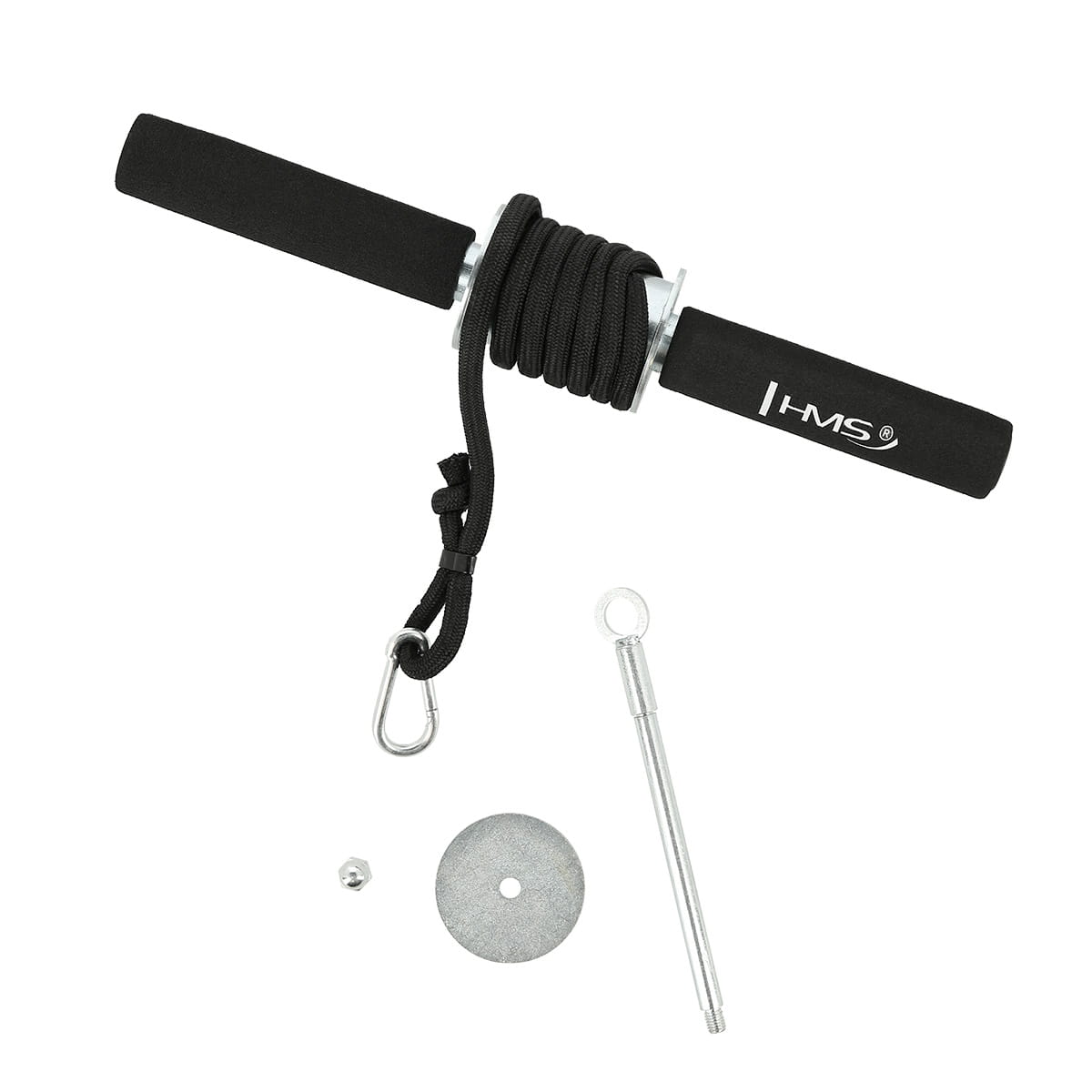 F4420 HMS Wrist Roller - to przyrząd do ćwiczenia mięśni przedramion. Produkt został wykonany z materiałów najwyższej jakości. Wygodny karabińczyk na końcu linki pozwala łatwo i wygodnie zmienić obciążanie. Rączki pokryte są pianką gwarantując pewniejszy chwyt oraz zapobiegającą wyślizgnięciu się urządzenia z rąk. Podczas zwijania lub rozwijania linki, na której zawieszone są obciążniki, mięśnie przedramion pracują w pełnym zakresie ruchu. Karabińczyk zamontowany na końcu linki pozwala łatwo i wygodnie zmienić obciążanie. F4420 HMS zapewnia bezpieczeństwo oraz umożliwia wszechstronny trening całego ciała.