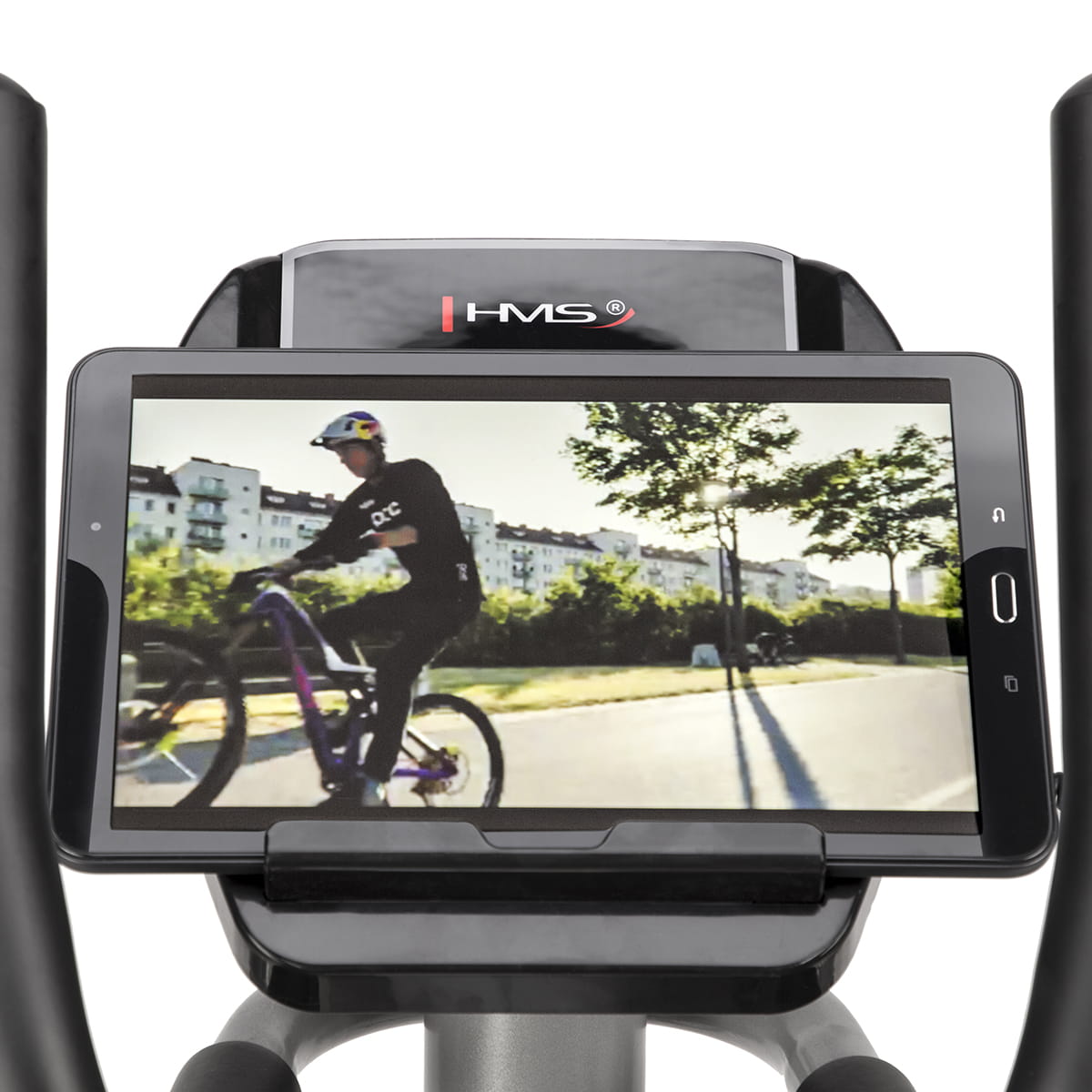 Model H6996, wyposażony jest w miejsce na urządzenie mobilne, dzięki temu w trakcie treningu, bez trudu możemy korzystać np. z tableta.