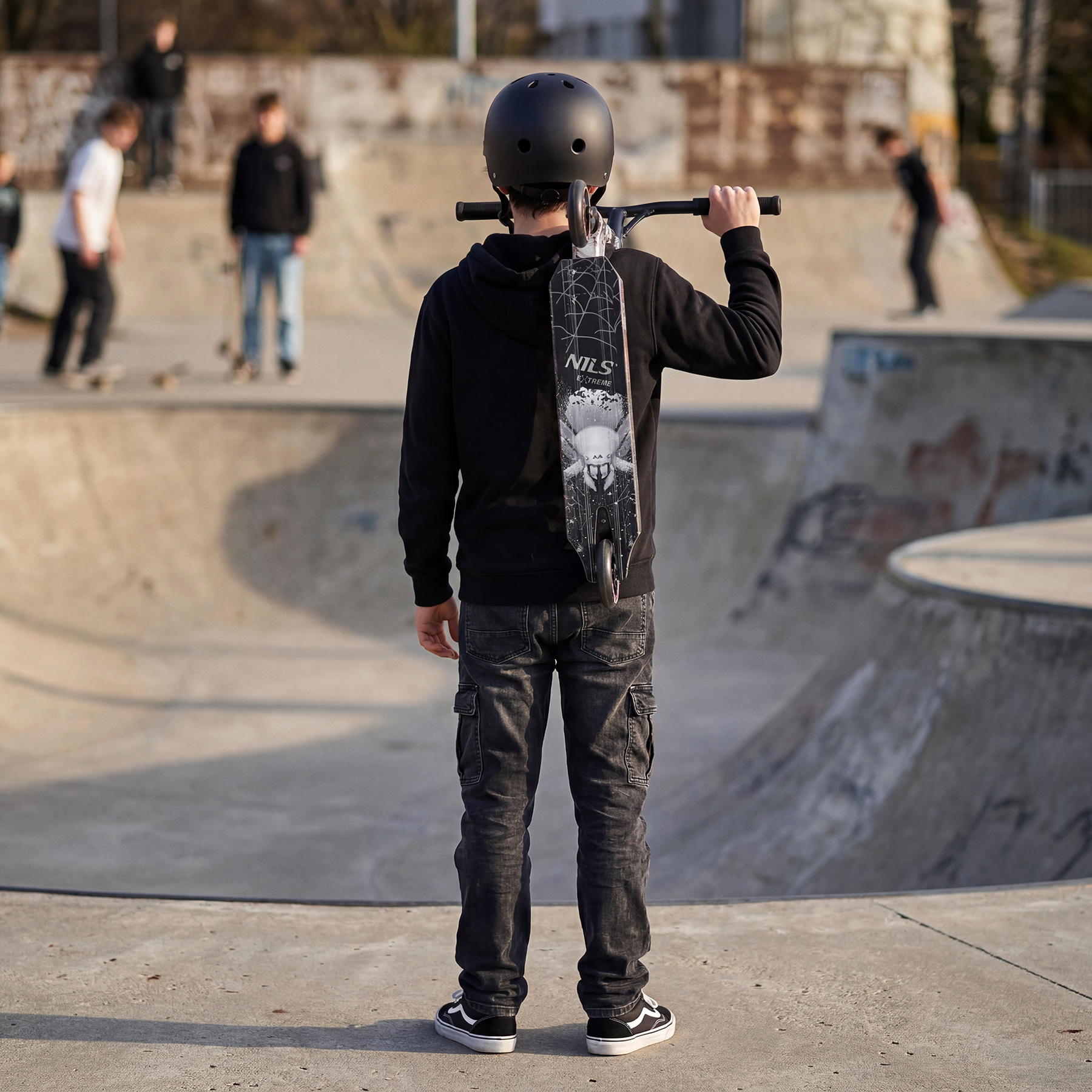 HS221 SPIDER NILS EXTREME to wyczynowa hulajnoga typu stunt zaprojektowana pod freestyle i triki – do skateparku oraz dynamicznej jazdy rekreacyjnej. To konstrukcja maksymalnie prosta i sztywna: bez mechanizmu składania oraz bez regulacji wysokości kierownicy, co przekłada się na stabilniejsze prowadzenie i lepszą kontrolę podczas nauki oraz wykonywania ewolucji.