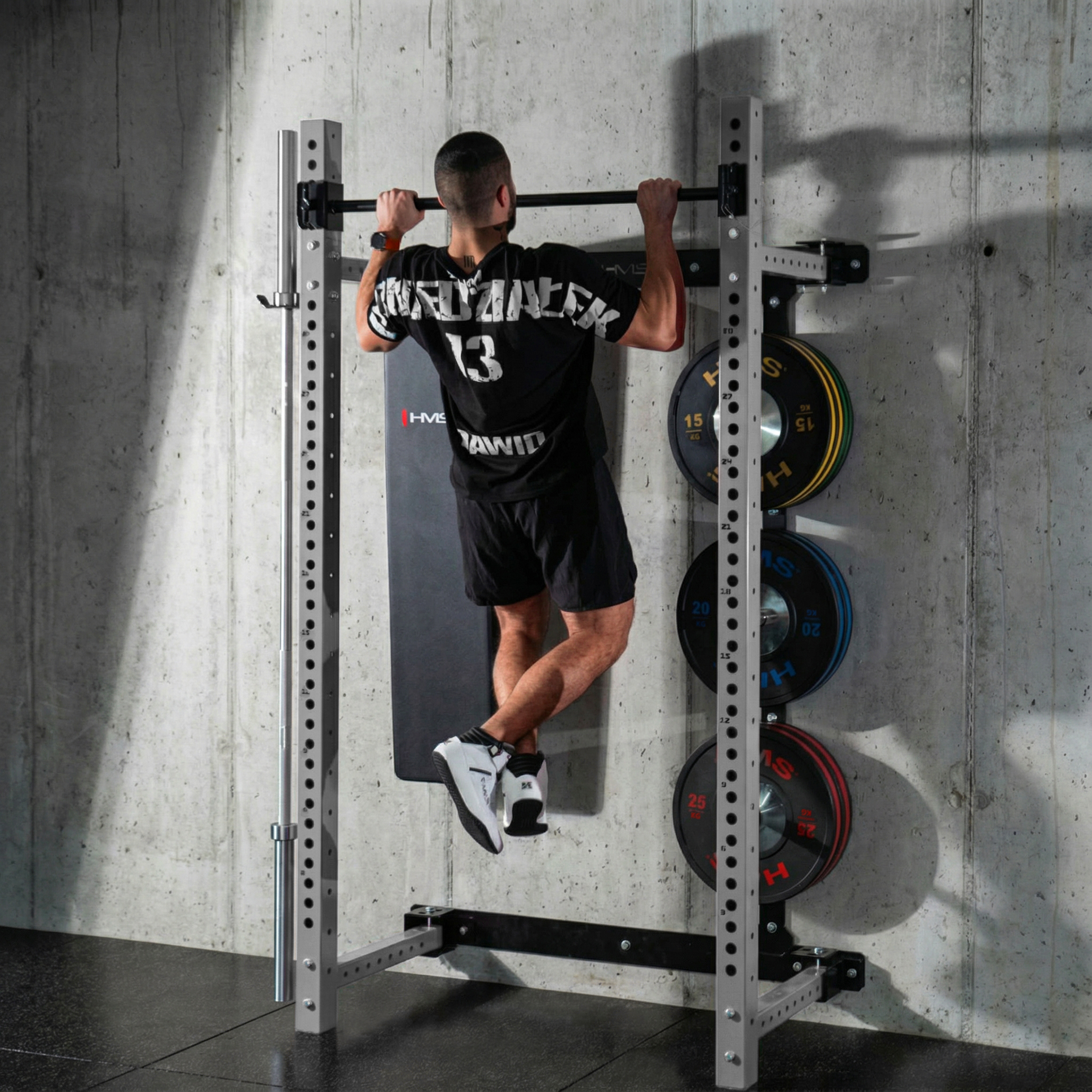Solidna stalowa konstrukcja klatki KLT34 HMS Fitness została zaprojektowana z myślą o intensywnym treningu siłowym: