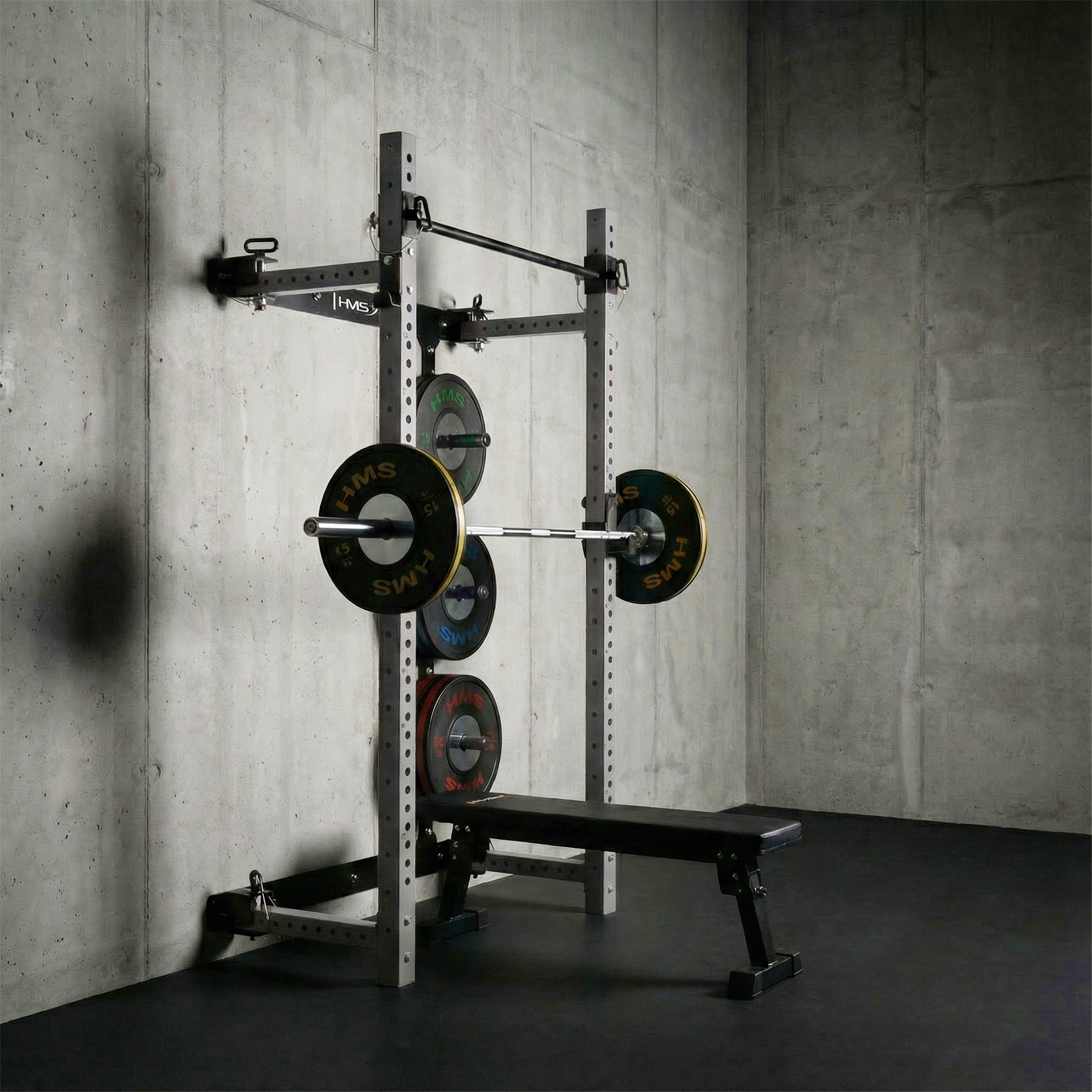 Klatka treningowa KLT34 HMS Fitness została zaprojektowana z myślą o domowych siłowniach, w których liczy się przestrzeń i funkcjonalność. Dzięki konstrukcji rozsuwanej na bok nie wymaga wysokiego sufitu, co pozwala na montaż w mieszkaniach, piwnicach i garażach. Stabilna budowa, wysokie parametry obciążeniowe oraz składana ławka tworzą kompletne stanowisko do treningu siłowego.