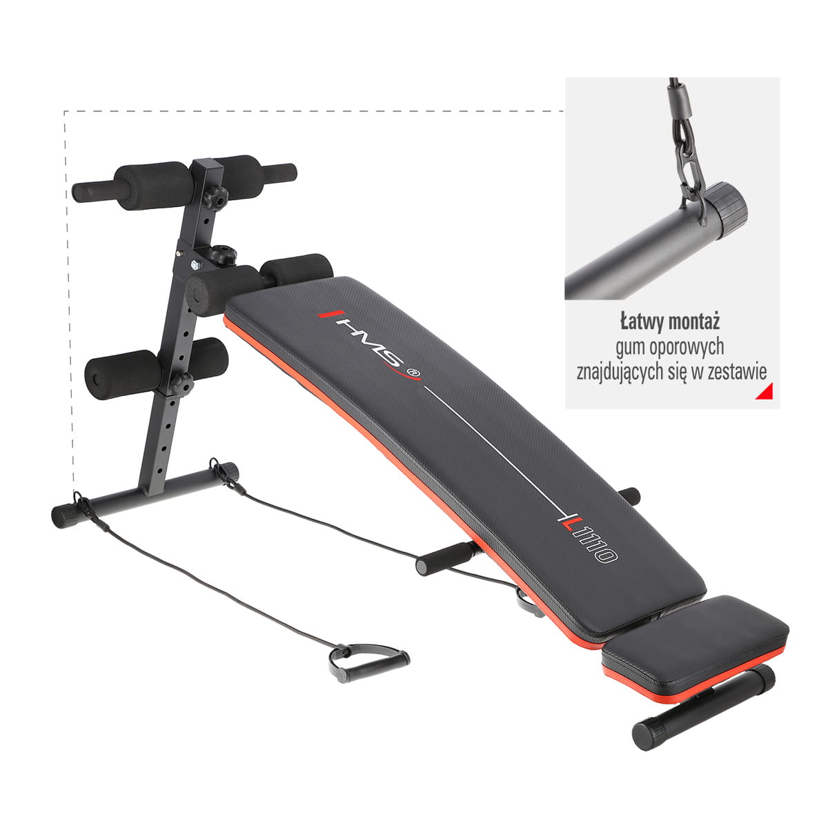 L1110 HMS, to ławka skośna, której głównym zastosowaniem jest wykonywanie skłonów czyli tzw. brzuszków.
