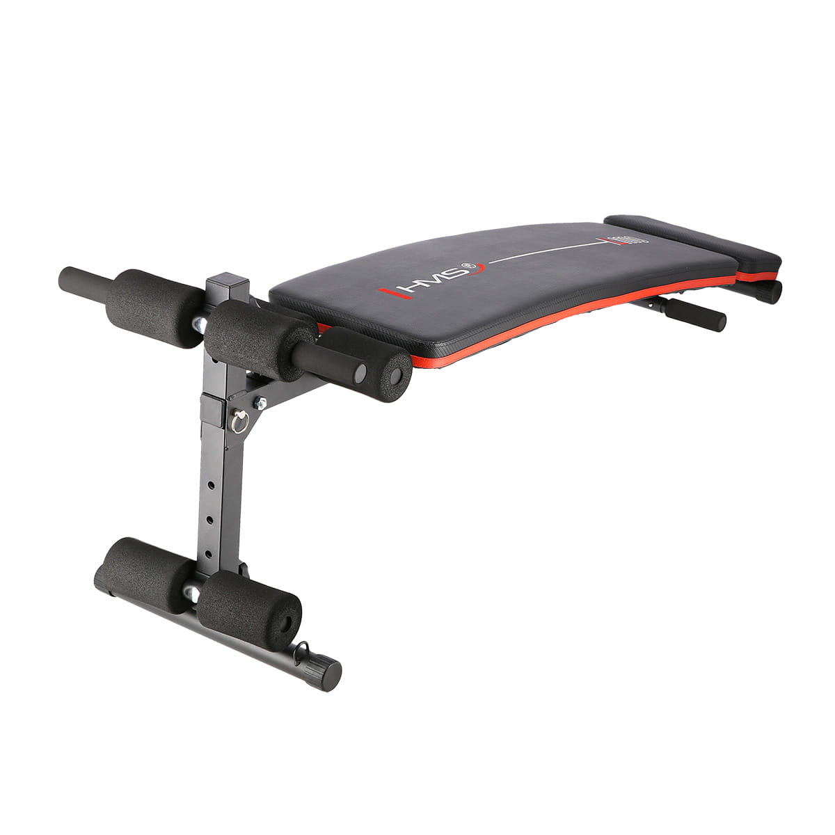 Ławka L1110 HMS, to nie tylko stabilność, ale i wygoda. Miękka gąbka na oparciu oraz gąbki na podpórkach na stopy, gwarantują komfort ćwiczeń przez cały czas ich trwania. Tapicerka o karbonowym wzorze jest nie tylko stylowa, ale również odporna na pot i zapobiega ślizganiu się ciała podczas ćwiczeń. Regulacja poziomu nachylenia, pozwala w prosty sposób dostosować trudność ćwiczenia do swoich potrzeb. Im większe nachylenie, tym bardziej zaawansowane ćwiczenie. W zestawie z ławką znajdują się również gumy oporowe, które łatwo i szybko zaczepia się w specjalnie przeznaczonym do tego miejscu. Gumy urozmaicą trening i zapewnią duży wachlarz możliwych do wykonania ćwiczeń.