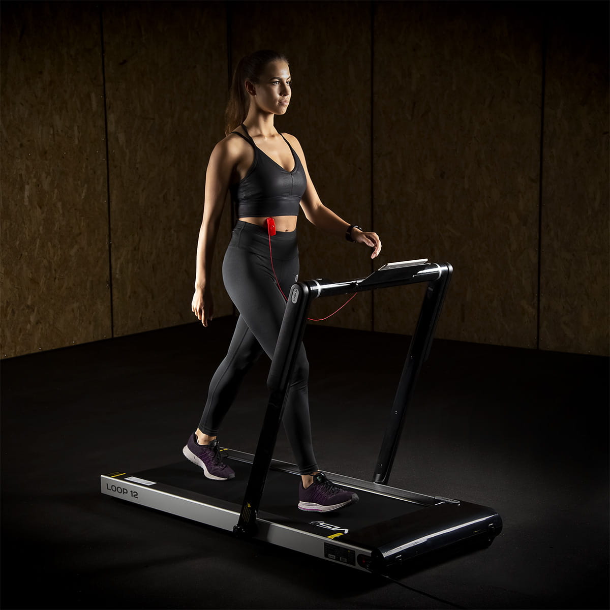 Dodatkowym atutem bieżni jest rozmiar, ponieważ za sprawą składanej poręczy LOOP12 nie zajmuje dużo miejsca. Przestawianie urządzenia również nie będzie problemem, dzięki zamontowanym kółkom transportowym bez specjalnego wysiłku możemy poruszać bieżnią pionowo oraz poziomo. Z tą bieżnią możesz trenować gdzie chcesz i kiedy chcesz, bez obaw o brak miejsca lub uciążliwy transport. LOOP12 dostosowuje się do Twoich potrzeb i warunków.