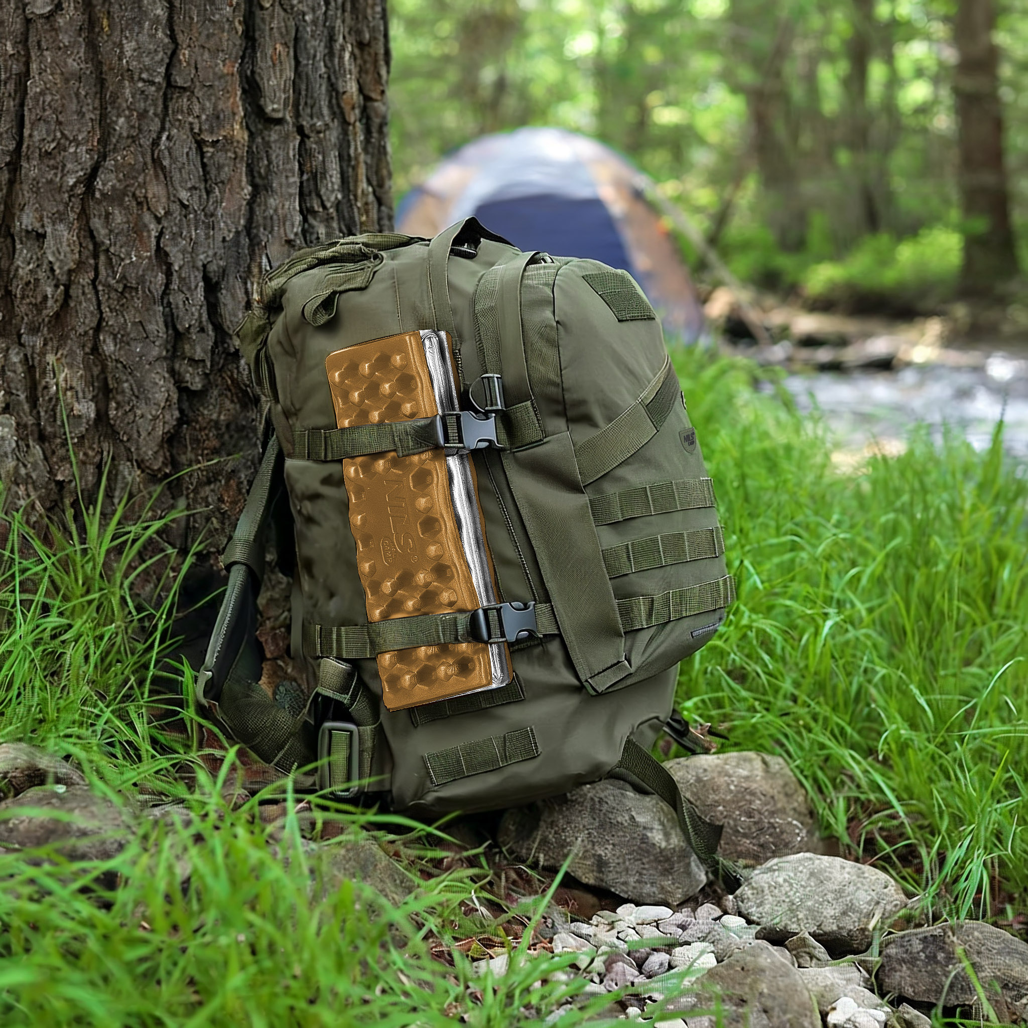 Od spodu mata została wyposażona w warstwę folii aluminiowej, która skutecznie odbija ciepło ciała i zabezpiecza przed zimnem oraz wilgocią. Dzięki temu możesz swobodnie usiąść na kamieniu, wilgotnej trawie czy chłodnym podłożu bez obaw o dyskomfort.