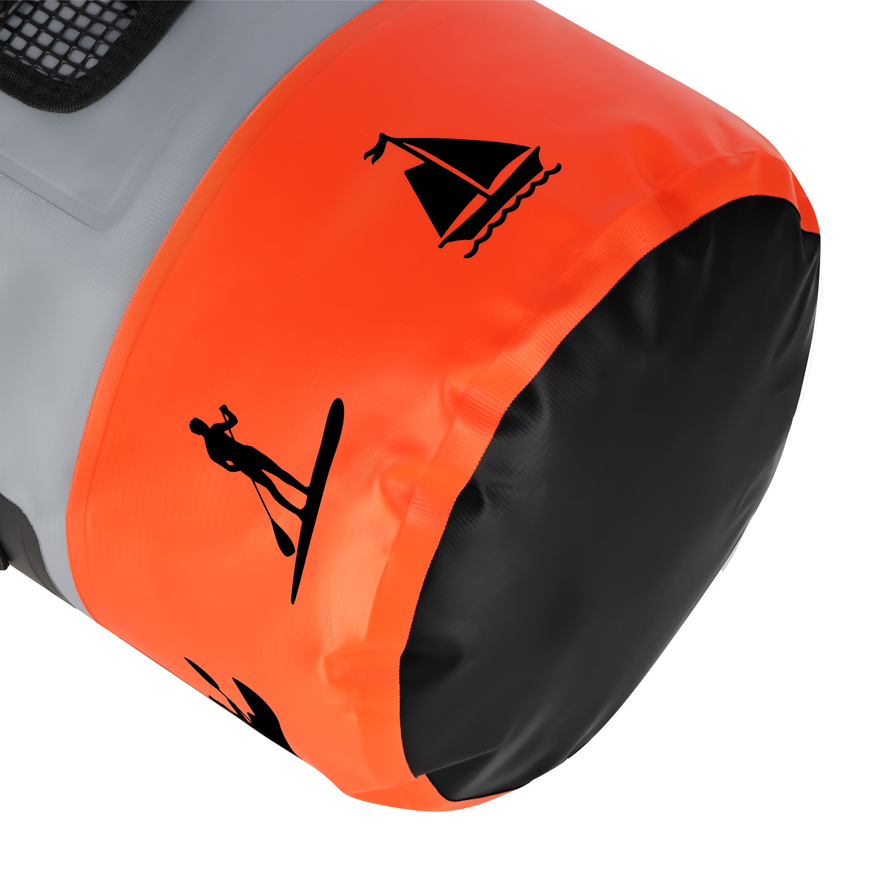 Główna komora plecaka zamykana jest przez zrolowanie i spięcie klamrą zatrzaskową, co dodatkowo wzmacnia szczelność i chroni wnętrze przed zalaniem. Regulowane pasy naramienne są odpinane, co daje możliwość dostosowania plecaka do różnych sytuacji – możesz go nosić jak tradycyjny plecak lub jako torbę transportową.