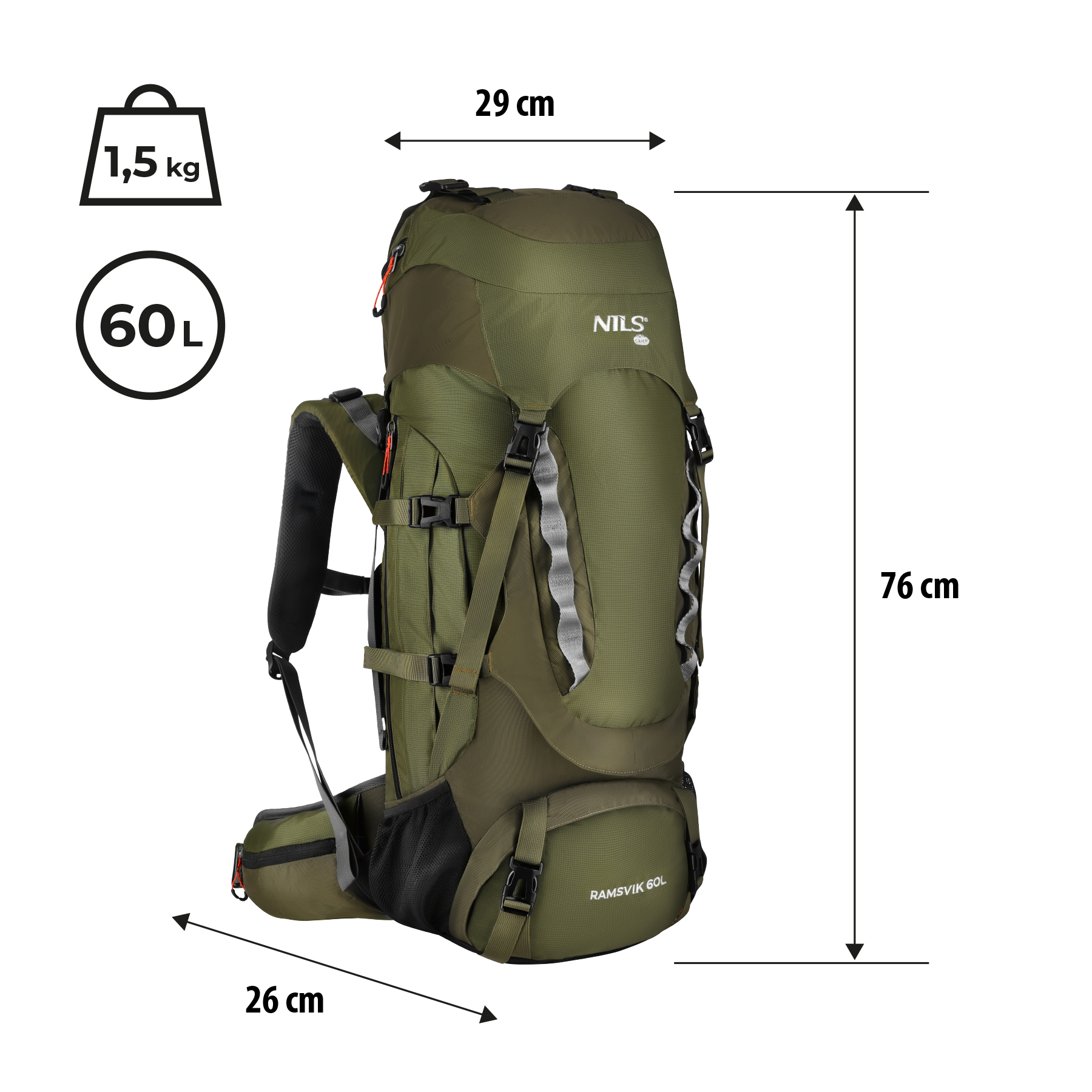 NC1994 RAMSVIK 60L NILS CAMP to zaawansowany plecak turystyczny zaprojektowany z myślą o dłuższych wyprawach trekkingowych, biwakach oraz outdoorowych podróżach z pełnym ekwipunkiem. Łączy dużą pojemność, wysoką funkcjonalność i komfort noszenia, nawet przy ????znym obciążeniu.