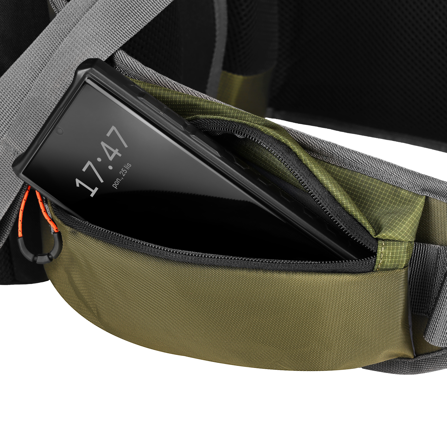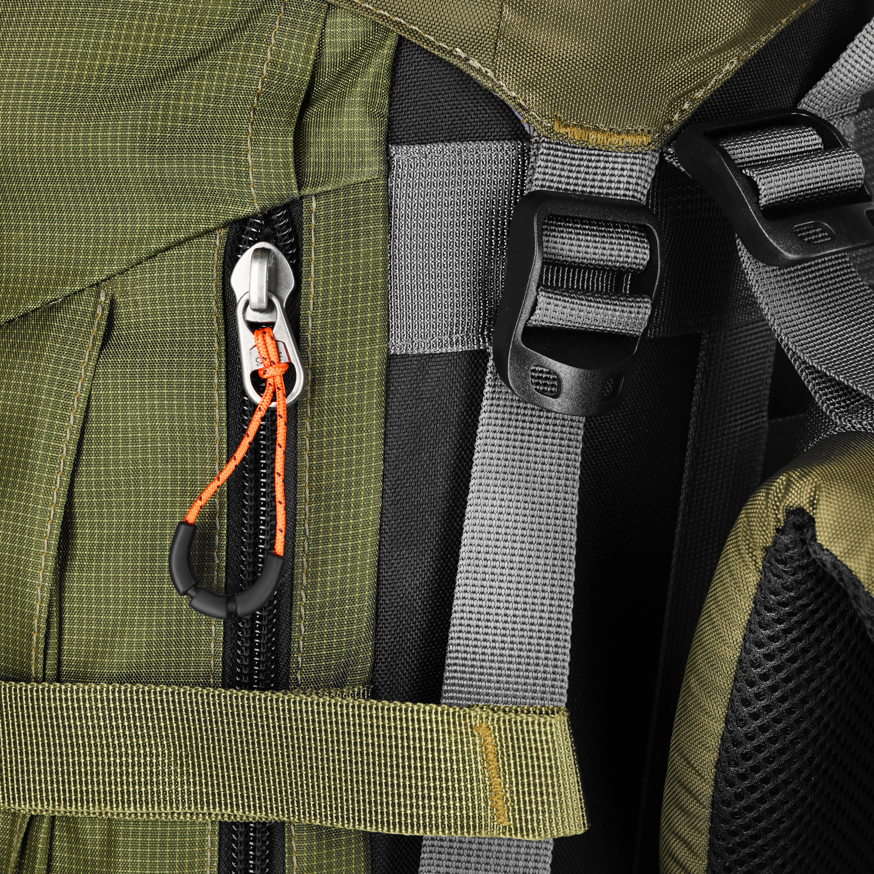 Plecak wyposażono w półotwarty system U-zip, który umożliwia szybki dostęp do wnętrza komory głównej bez konieczności wypakowywania całej zawartości. To praktyczne rozwiązanie pozwala sprawnie sięgnąć po potrzebny sprzęt w trakcie postoju na szlaku.