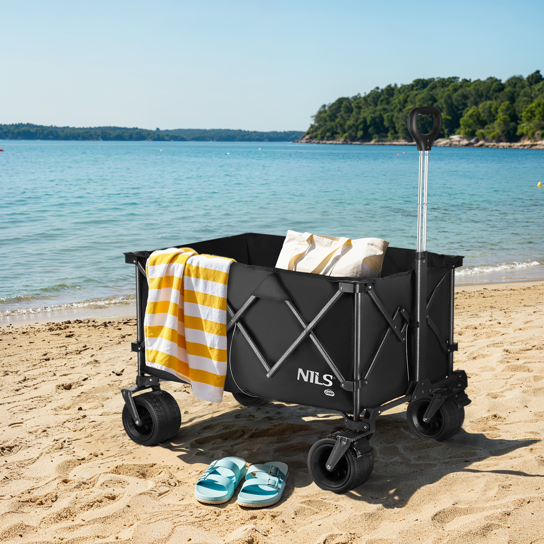 Wózek turystyczny NILS CAMP NC2604 to niezastąpione wsparcie podczas wypraw kempingowych, pikników, rodzinnych wyjazdów nad wodę czy pracy w ogrodzie. Dzięki połączeniu solidnej konstrukcji, dużej pojemności i łatwości obsługi, NC2604 gwarantuje komfort użytkowania w każdych warunkach terenowych.