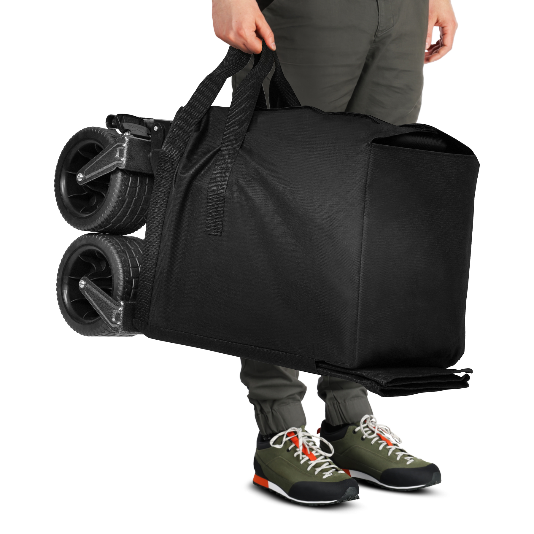 Powierzchnia transportowa została wykonana z wytrzymałej tkaniny 600D Oxford, która jest odporna na przetarcia, wilgoć oraz zabrudzenia. Materiał nie tylko doskonale znosi intensywne użytkowanie, ale również jest łatwy do utrzymania w czystości, co czyni go idealnym wyborem do zastosowań plenerowych.