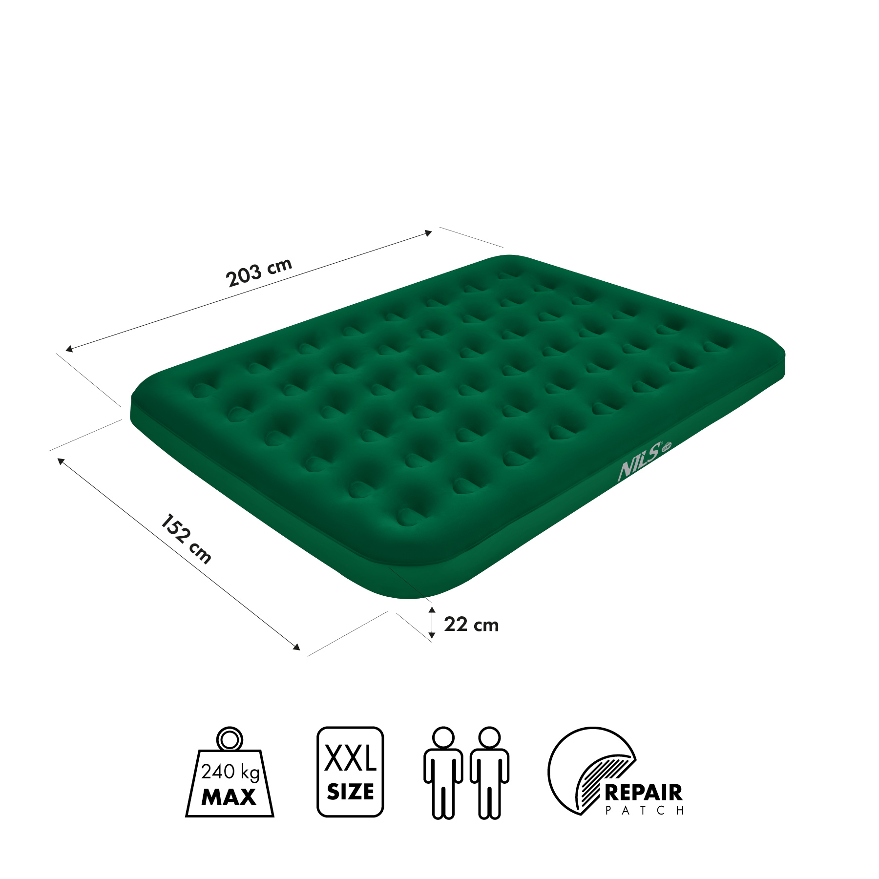 NC2803 MATERAC TURYSTYCZNY DMUCHANY 203X152X22 CM ZIELONY NILS CAMP