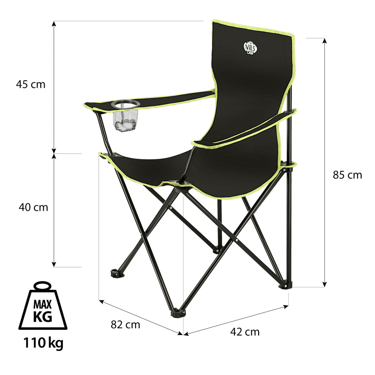 NC3044 CZARNO-LIMONKOWY KRZESŁO TURYSTYCZNE NILS CAMP