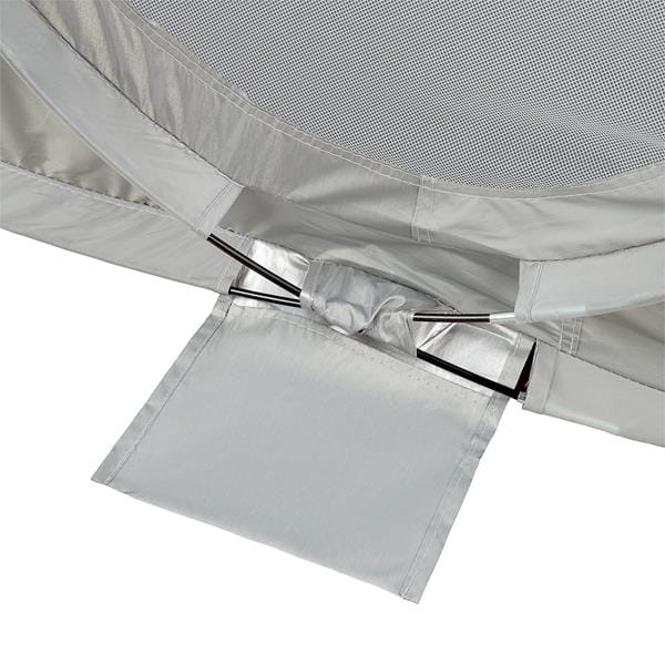 NC3143, został wykonany z materiałów najwyższej jakości. Materiał na podłodze jest wodoodporny, zatem wilgotny piasek nie będzie problemem. W namiocie, została zastosowana siatka wentylacyjna, dzięki której w środku cały czas jest przepływ powietrza. Namiot posiada również powłokę, chroniącą przed promieniami UV.