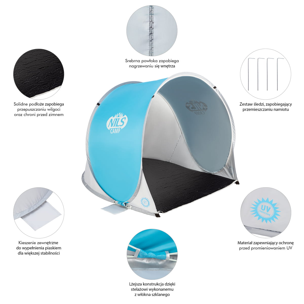 NC3173 NIEBIESKO-SZARY NAMIOT PLAŻOWY SAMOROZKŁADAJĄCY PODŁOGA NILS CAMP