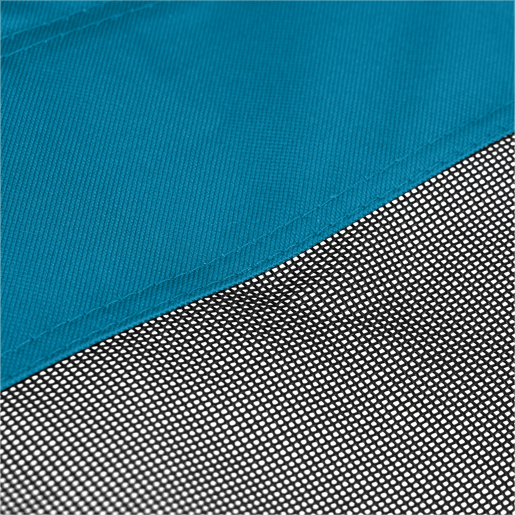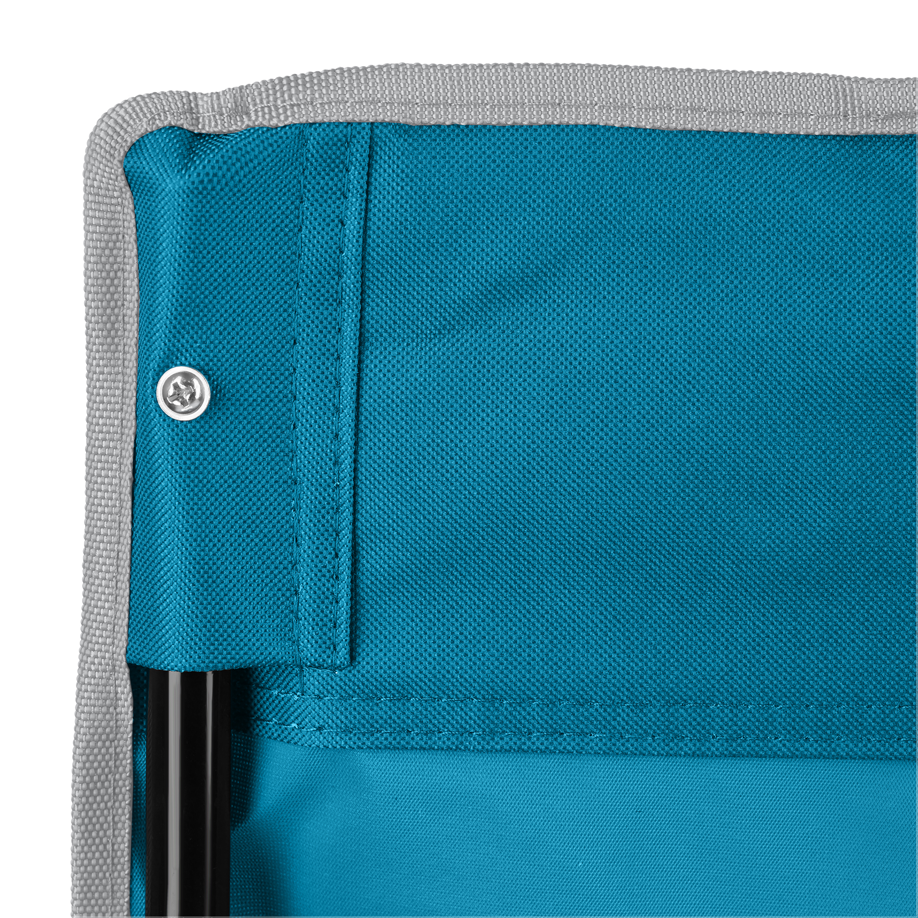 Siedzisko i oparcie wykonano z wytrzymałego poliestru 600D, który dodatkowo został powleczony warstwą PVC. Materiał ten jest nie tylko odporny na przetarcia i wilgoć, ale również bardzo łatwy w czyszczeniu. Czarna taśma wzmacniająca poprawia trwałość obrzeży i dodaje eleganckiego wykończenia.