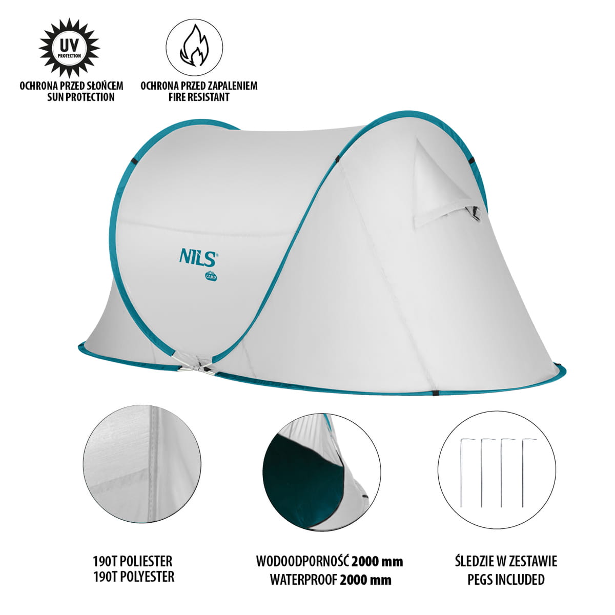 Samorozkładający się namiot NC3743 marki NILS CAMP to idealne rozwiązanie dla każdego entuzjasty spędzania czasu na świeżym powietrzu. NC3743 jest błyskawiczny w rozłożeniu, wytrzymały oraz funkcjonalny, ale przede wszystkim zapewni skuteczną ochronę przed promieniami słonecznymi, zapewni cień, a jednocześnie osłoni od wiatru.