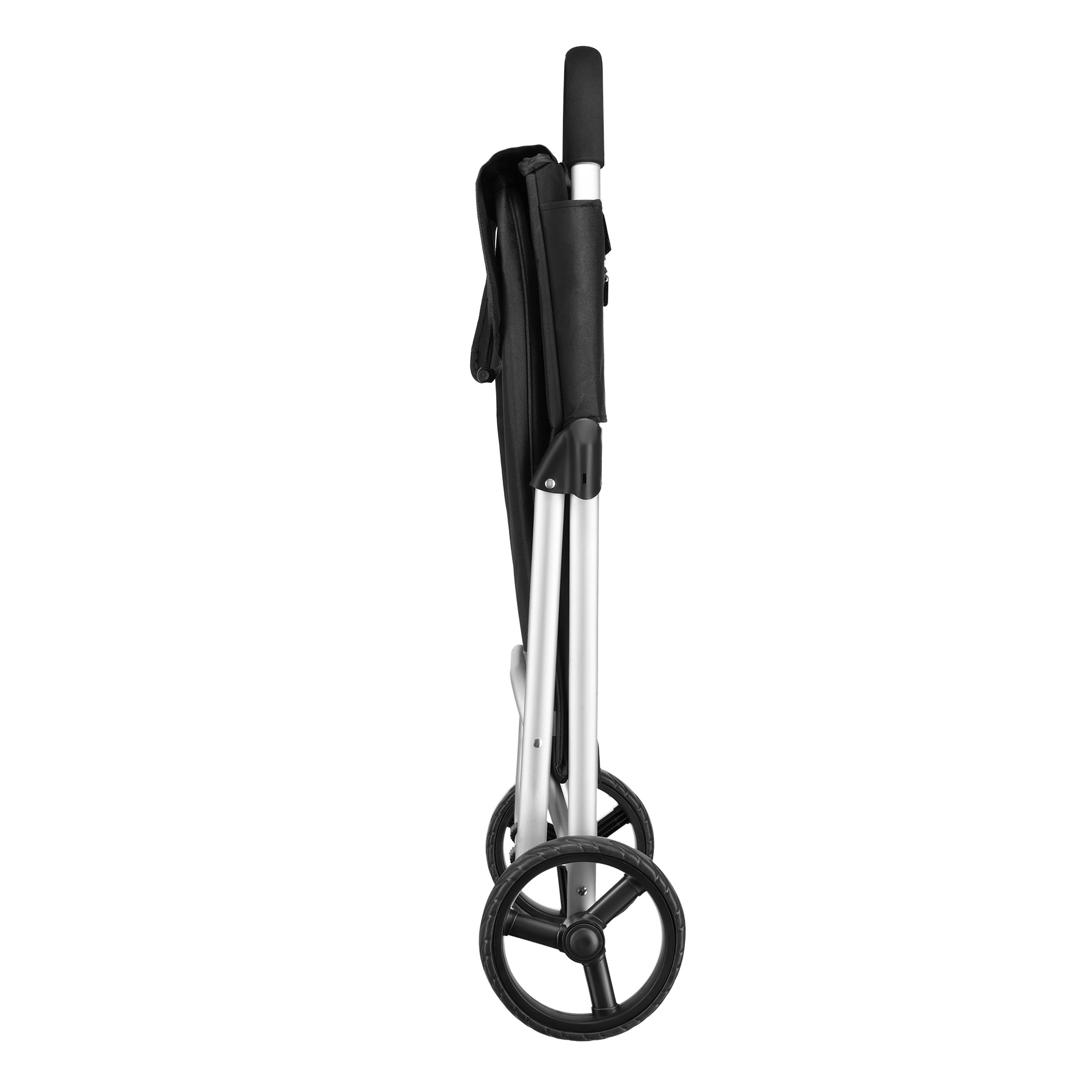 Duże koła o średnicy 20 cm i grubości 3,5 cm zapewniają płynne prowadzenie po różnych nawierzchniach – na chodniku, kostce brukowej czy w sklepie. Aluminiowy uchwyt z wykończeniem z pianki dobrze leży w dłoni i zwiększa komfort prowadzenia nawet przy pełnym obciążeniu.