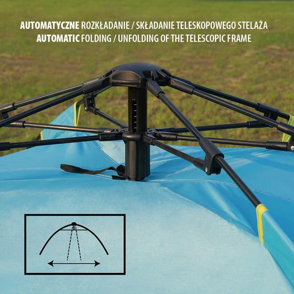 Automatycznie rozkładany namiot turystyczny Nils Camp NC7819 Shadow to praktyczne rozwiązanie dla wszystkich tych, którzy uwielbiają kilkudniowy górski survival, wypad nad jezioro lub wypoczynek na plaży. Shadow to namiot, który wyróżnia się tym, że posiada niezależną sypialnię oraz niezależną zewnętrzną konstrukcję, która rozkłada się automatycznie i może posłużyć jako tropik lub osobny, przewiewny namiot chroniący przed słońcem. Shadow jest w stanie pomieścić trzy osoby, gwarantując odpowiednią ilość miejsca i komfort podczas snu.
