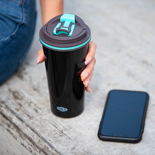 Kubek termiczny NCB18 marki Nils Camp cechuje zarówno prosta konstrukcja jak i oryginalny design! NCB18 to kubek termiczny wykonany jest ze stali nierdzewnej o podwójnej ściance, dzięki czemu gwarantuje utrzymanie temperatury ciepłych napoi przez 12 godzin, a zimnych przez 24 godziny. Kubek termiczny NCB18 posiada bardzo wygodny system otwierania. Wystarczy pociągnąć do góry za uchwyt otwierania i gotowe. Kubek posiada również dodatkowy uchwyt, który może być przydatny podczas transportu. Dużym atutem jest również to, że dolna część kubka posiada antypoślizgową gumę, co zwiększa bezpieczeństwo przed rozlaniem gorącej kawy czy herbaty podczas gdy kubek jest otwarty!