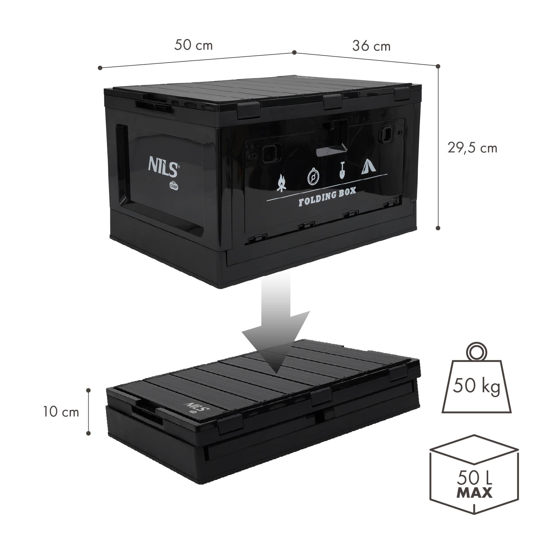 NCB4006 SKŁADANA SKRZYNIA KEMPINGOWA Z FUNKCJĄ STOŁU 2W1 50L NILS CAMP