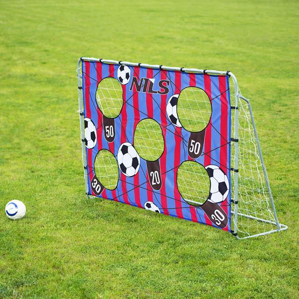 NT7788 to wolnostojąca bramka piłkarska z panelem do treningu strzałów w zestawie. Idealnie nadaje się do treningów w ogrodzie i na boisku.