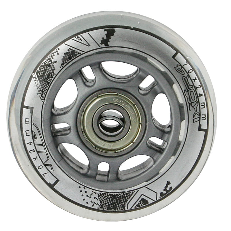 Kółka PU CLEAR NILS EXTREME są wykonane z poliuretanu. Najważniejszymi parametrami kółek są twardość oraz średnica. Twardość kółek decyduje zarówno o komforcie jazdy jak i o przyczepności do podłoża. Kółka PU-82A zapewniają dobrą amortyzację oraz doskonałą adaptację do każdej nawierzchni. Średnica kółek ma bezpośredni wpływ na szybkość jazdy. Kółka o większej średnicy umożliwiają osiąganie większych prędkości, jednak nie gwarantują tak dużej manewrowości jak kółka o mniejszej średnicy. Łożysko ABEC 7, wykonane z wysokiej jakości stali węglowej, które zapewnia doskonałą twardość i wytrzymałość. Charakteryzuje się najniższym oporem toczenia co przekłada się na największą prędkość w amerykańskiej normie Annular Bearing Engineering Committee w skrócie ABEC. Istotnym parametrem tego łożyska jest mimośrodowość czyli okrągłość na torze w pierścieniu wewnętrznym i wynosi zaledwie 0,0025mm.