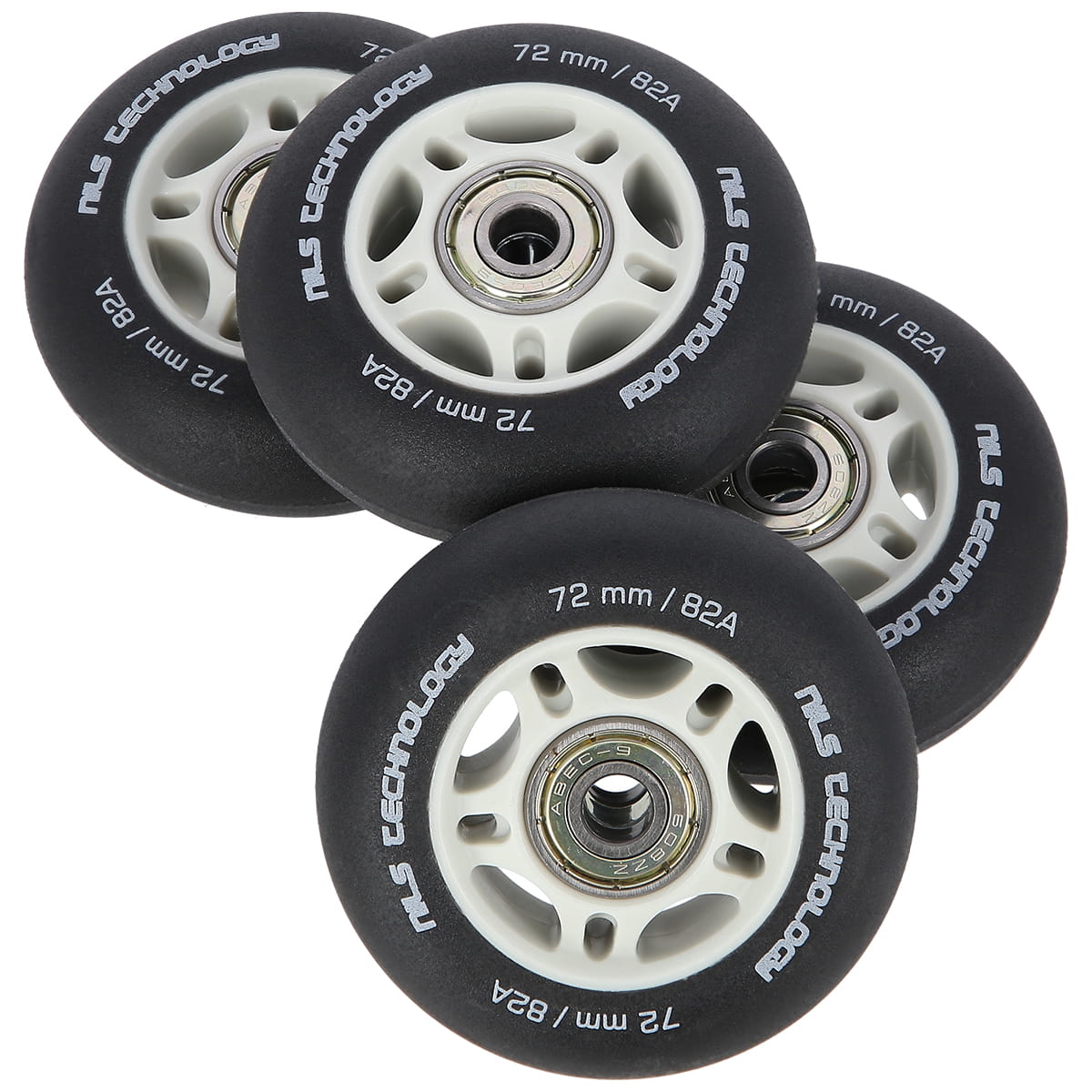 Kółka PU CZARNE MATOWE NILS EXTREME są wykonane z poliuretanu. Najważniejszymi parametrami kółek są twardość oraz średnica. Twardość kółek decyduje zarówno o komforcie jazdy jak i o przyczepności do podłoża. Kółka PU-82A zapewniają dobrą amortyzację oraz doskonałą adaptację do każdej nawierzchni. Średnica kółek ma bezpośredni wpływ na szybkość jazdy. Kółka o większej średnicy umożliwiają osiąganie większych prędkości, jednak nie gwarantują tak dużej manewrowości jak kółka o mniejszej średnicy. Łożysko ABEC 9, wykonane z wysokiej jakości stali węglowej, które zapewnia doskonałą twardość i wytrzymałość. Charakteryzuje się najniższym oporem toczenia co przekłada się na największą prędkość w amerykańskiej normie Annular Bearing Engineering Committee w skrócie ABEC. Istotnym parametrem tego łożyska jest mimośrodowość czyli okrągłość na torze w pierścieniu wewnętrznym i wynosi zaledwie 0,0012mm.
