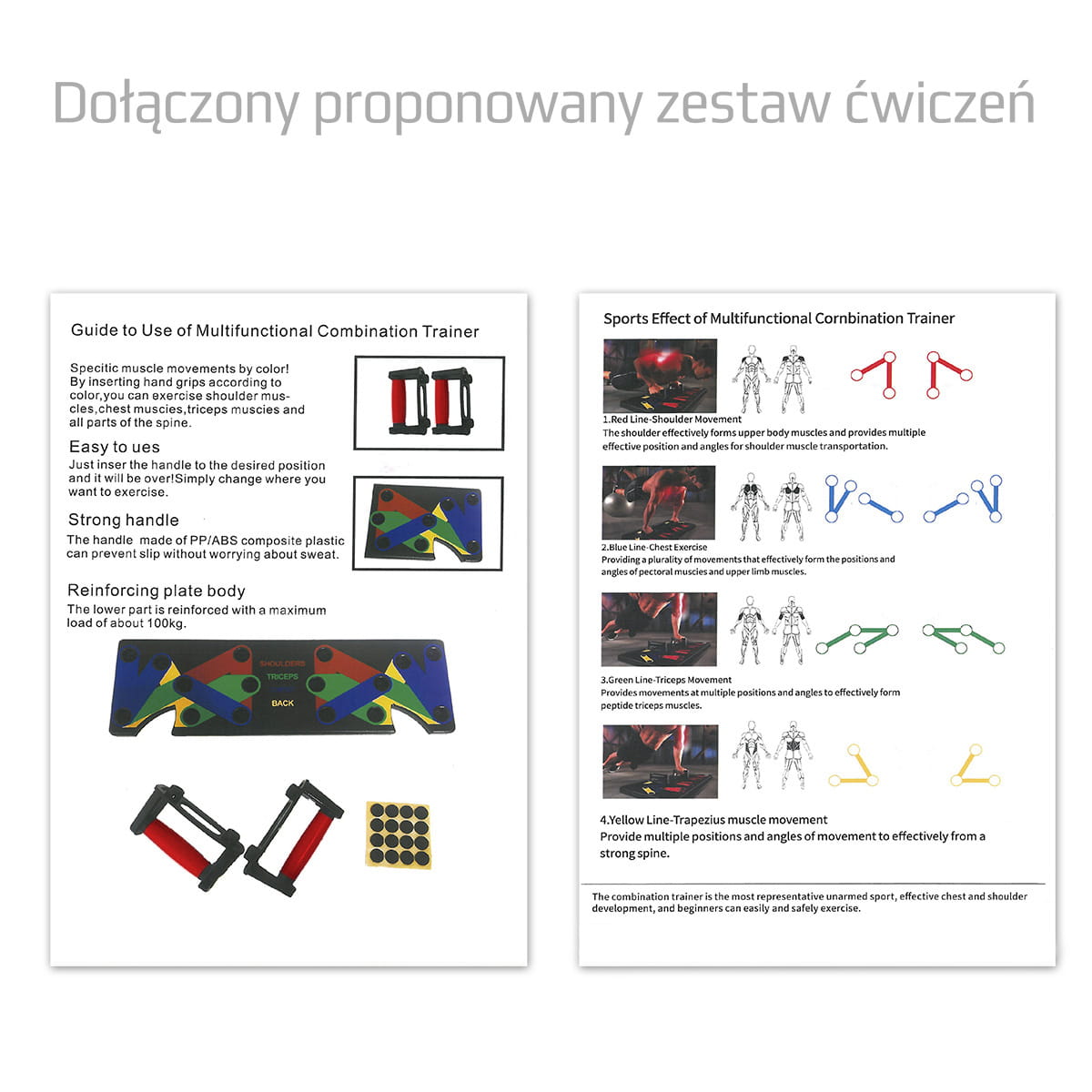 Przy jej użyciu, możliwe jest wykonanie treningu, niemalże całej górnej części ciała. Odbywa się to, przez zmianę kąta ułożenia podpórek. Każda taka zmiana, pozwala zaangażować inną grupę mięśniową, bądź ten sam mięsień, który będzie pracował nieco inaczej, przez co jego rozwój będzie kompleksowy. Deska, umożliwia ćwiczenia rozwijające mięśnie klatki piersiowej, tricepsa, barków oraz pleców. Każda grupa mięśniowa, jest zaznaczona na desce innym kolorem, a kolor opisany, tak by w trakcie treningu zmiana ustawienia, była szybka i łatwa.