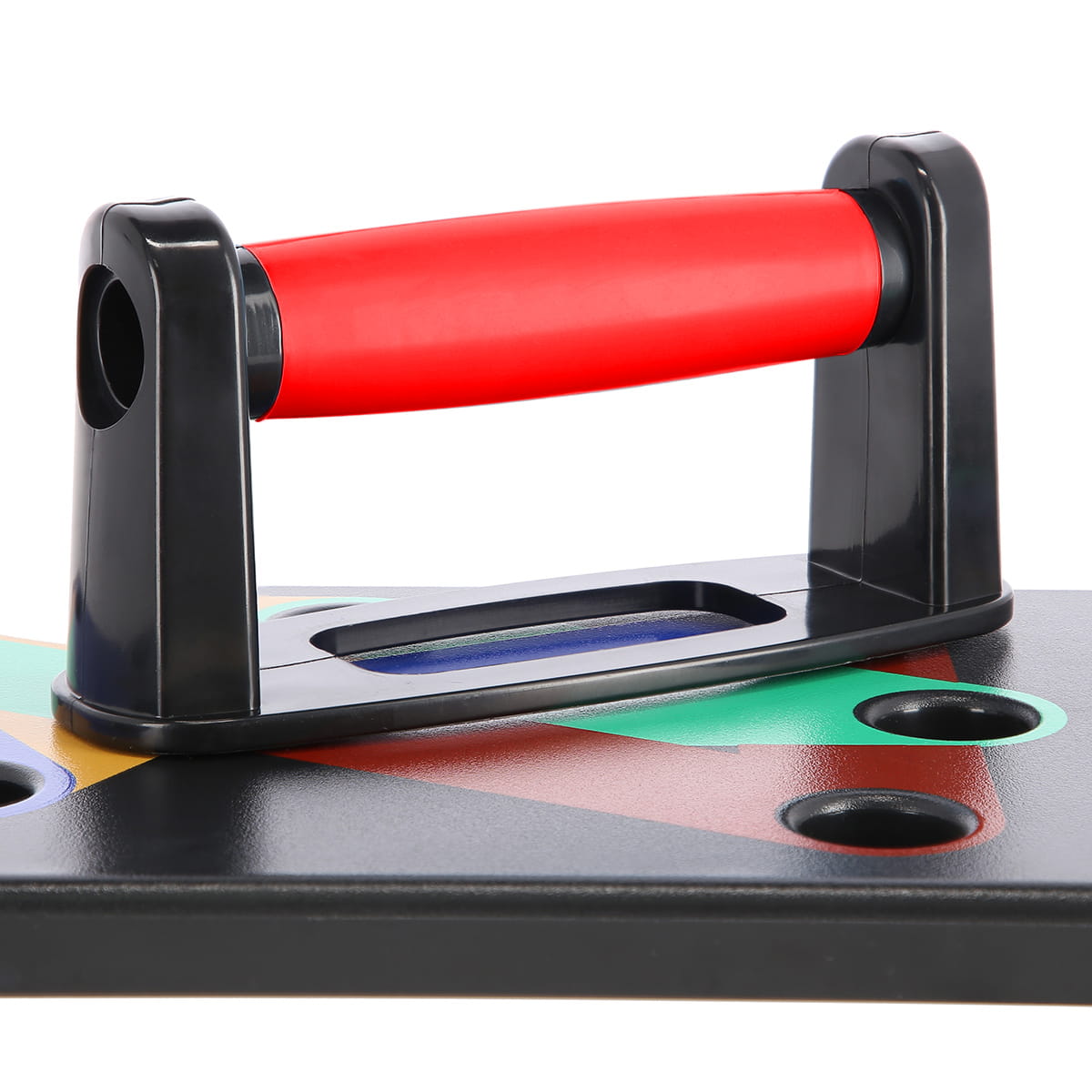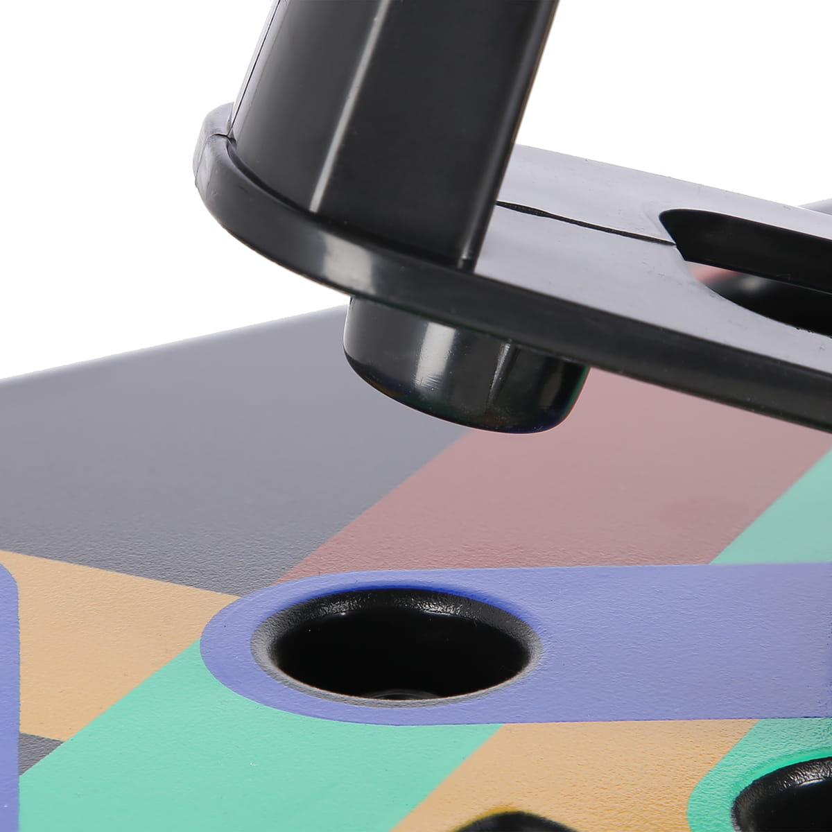 Od spodu, produkt posiada specjalne gumowe naklejki, które zapobiegają ślizganiu się. Na rękojeściach podpórek, również zastosowano materiał, którego zadaniem jest pewny chwyt, przez cały czas trwania treningu.