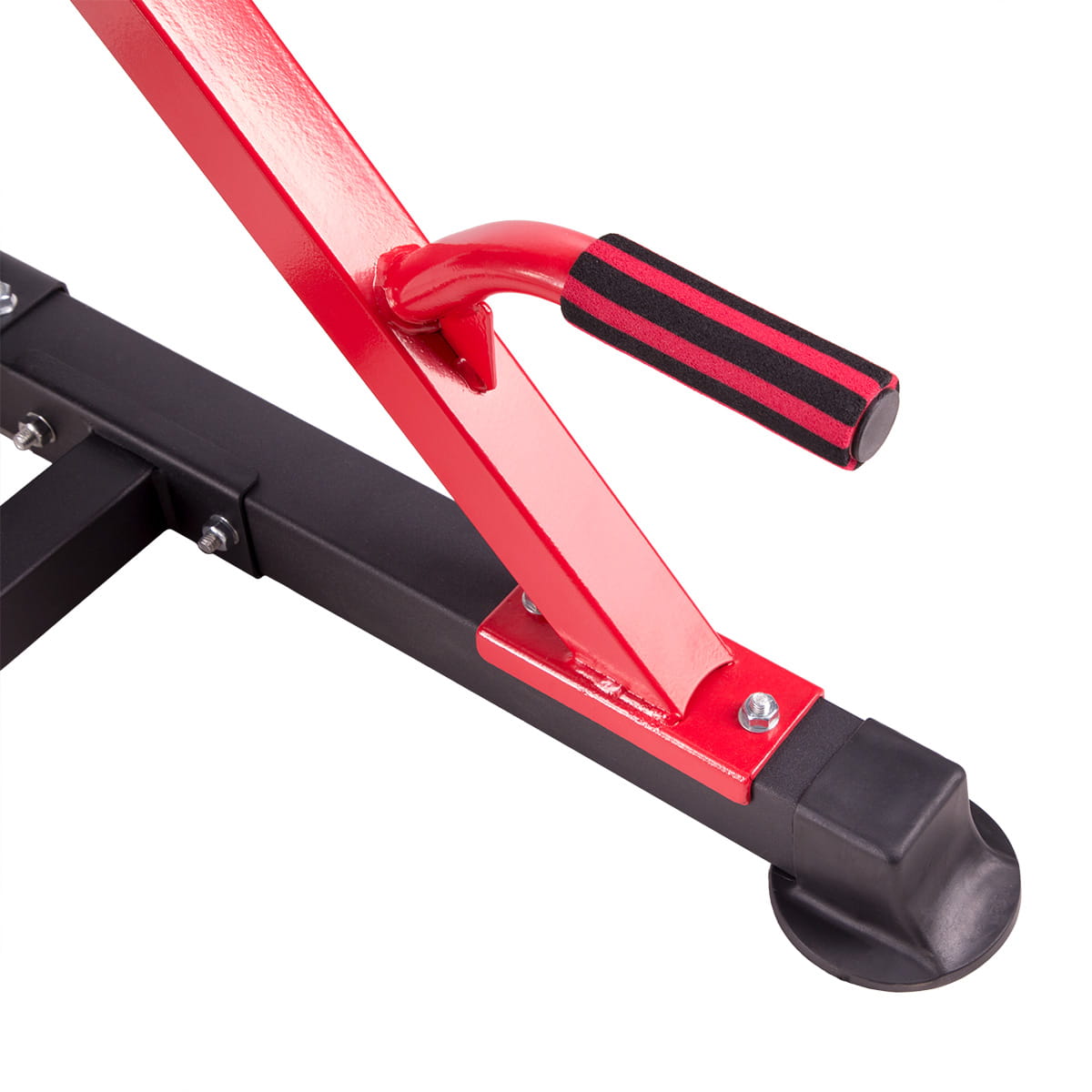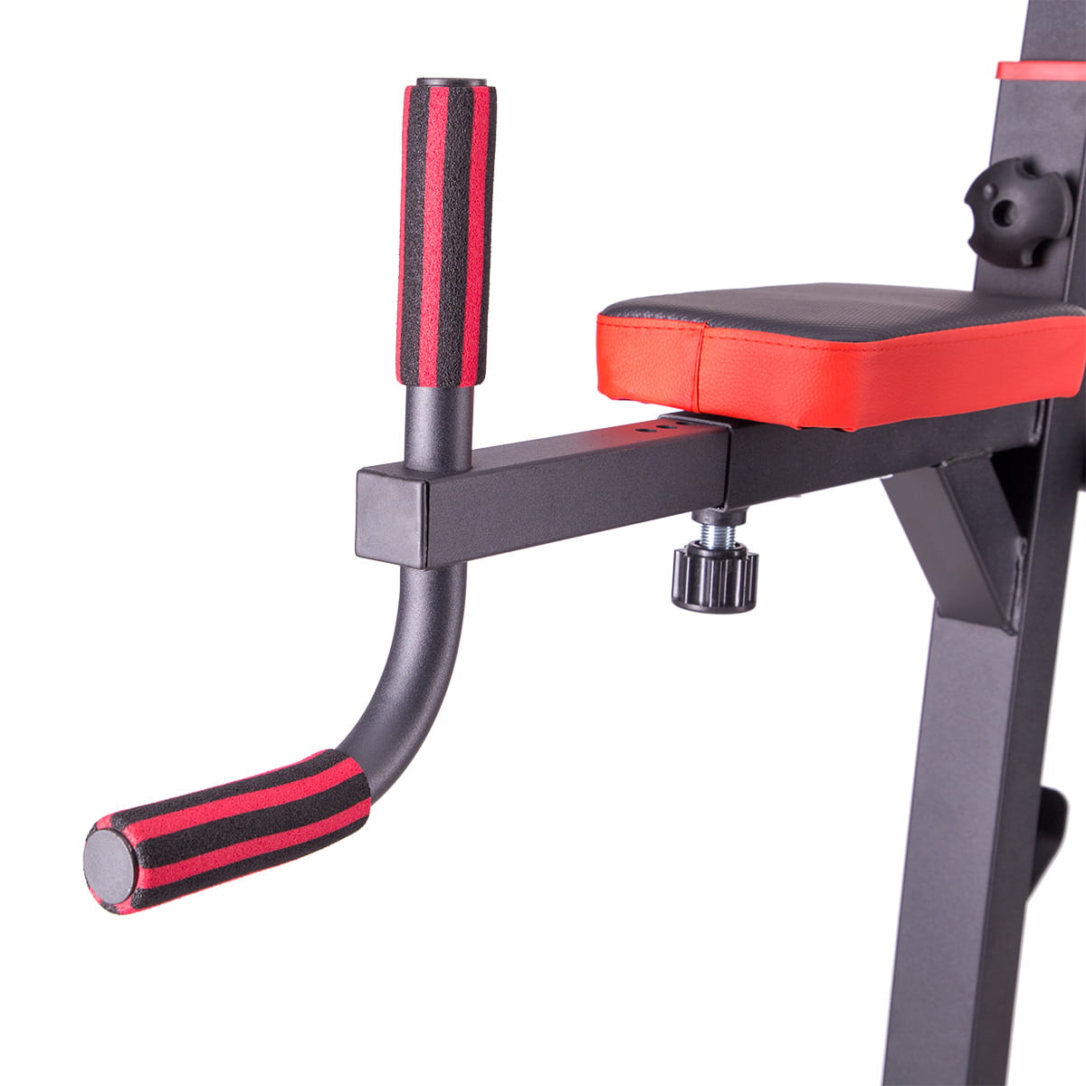 PWL8324 HMS, każdy dopasuje do swoich preferencji oraz do konkretnego ćwiczenia. Drążek ma regulowaną wysokość, uchwyty na poręczach są wysuwane umożliwiając dopasowanie do wielkości przedramienia. Ławeczkę można ustawić na wiele różnych sposobów. Do dyspozycji mamy ustawienie skośne w dół do treningu mięśni brzucha, ustawienie poziome oraz skośne w górę, aż do kąta prostego.