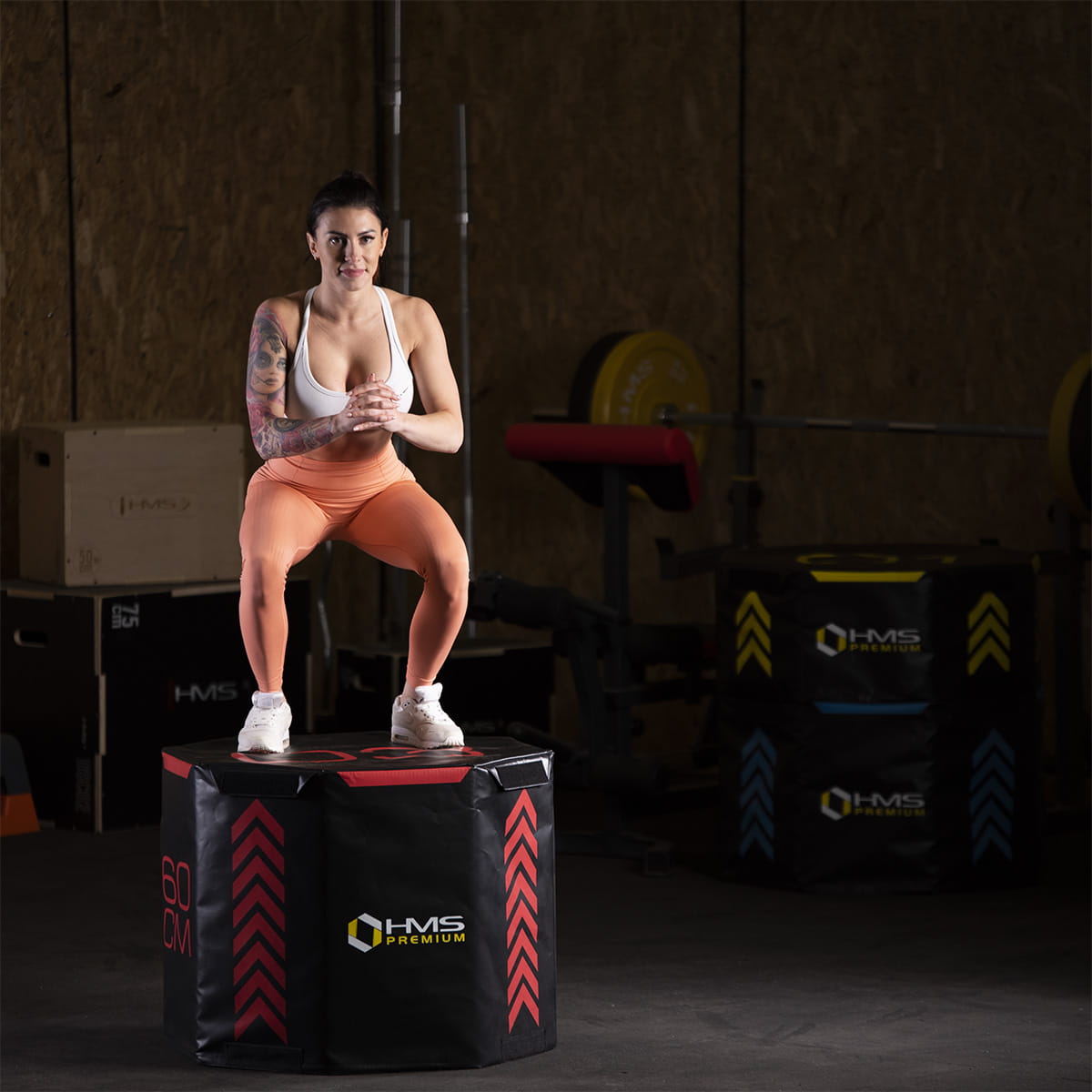PYOBS01 HMS PREMIUM, to zestaw trzech, miękkich, oktagonalnych skrzyń plyometrycznych, o różnych wymiarach.