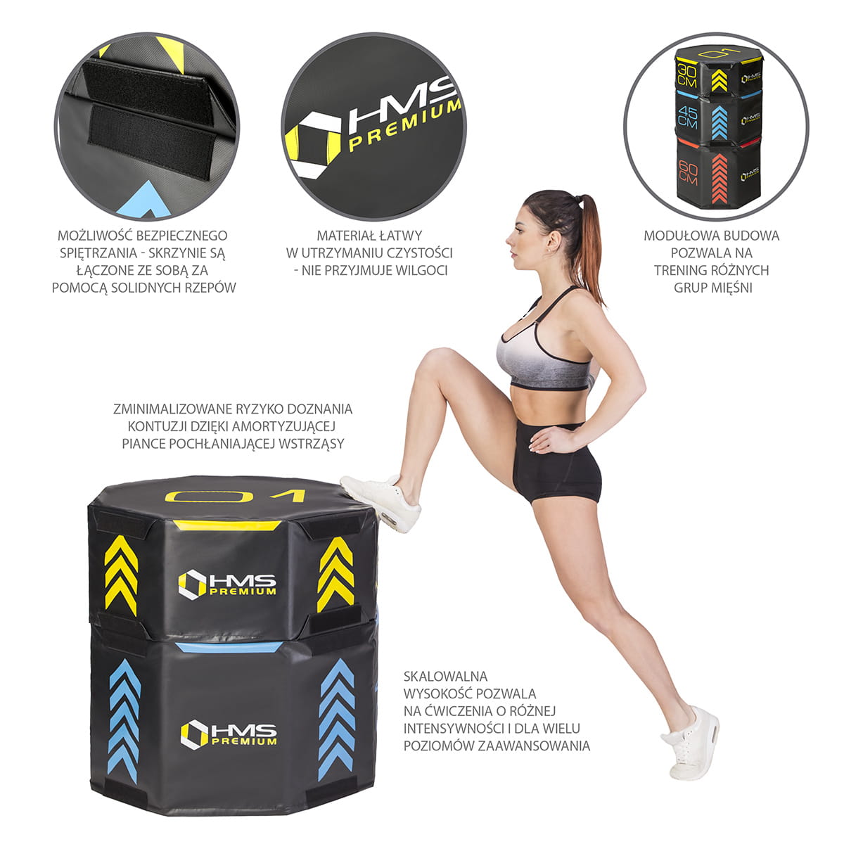 PYOBS01 SKRZYNIE PLYOMETRYCZNE OCTAGON SOFT ZESTAW HMS PREMIUM