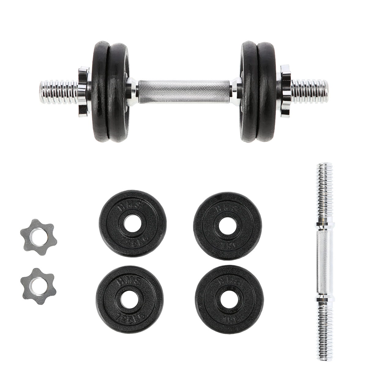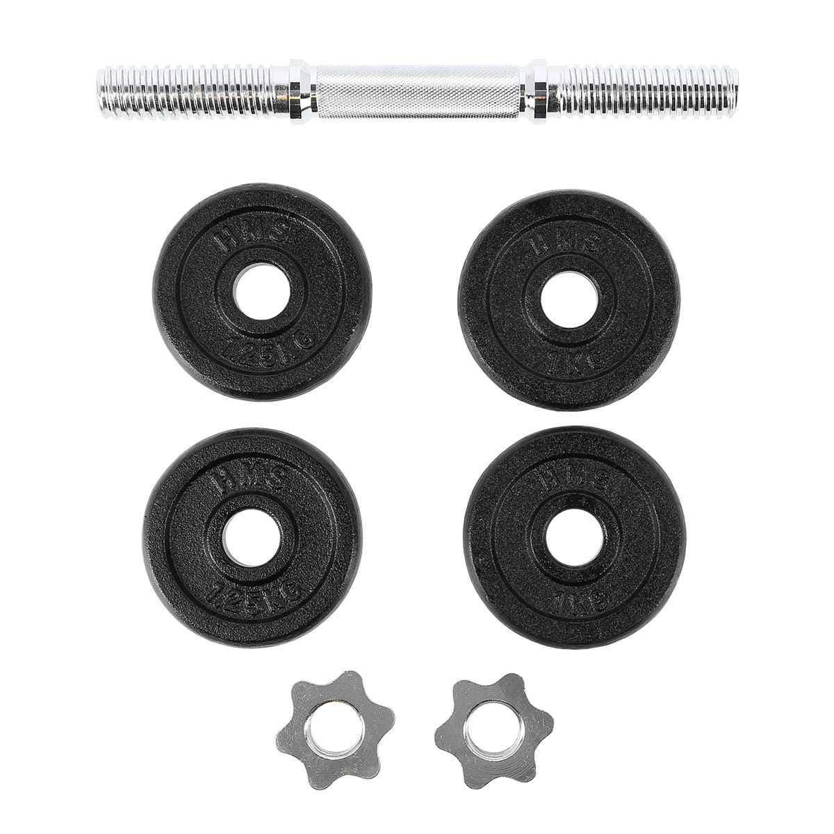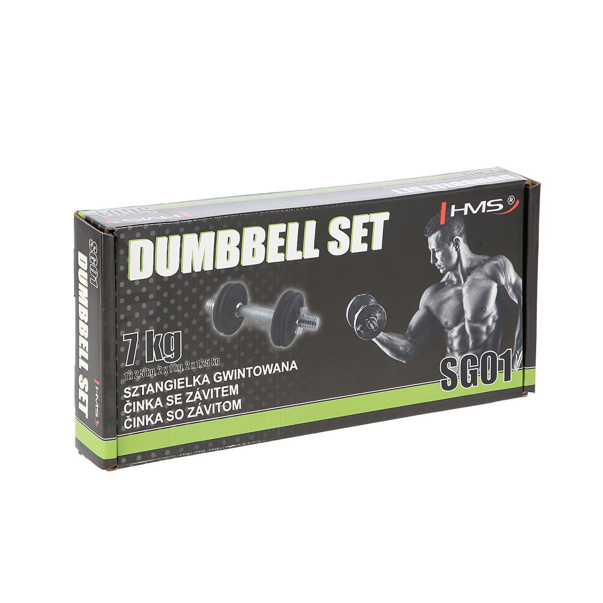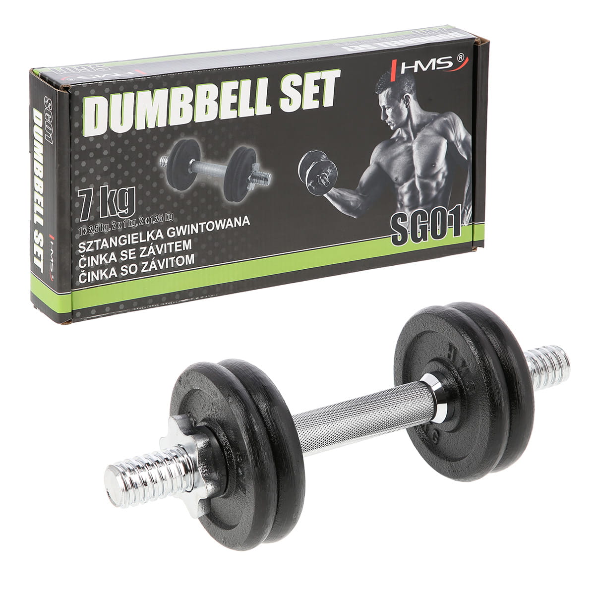 SG01 HMS – hantla żeliwna, czyli klasyka, a zarazem niezbędnik każdej domowej siłowni. W skład zestawu wchodzą: gryf prosty, 2 talerze 1 kg, 2 talerze 1,25 kg oraz 2 zaciski gwiazdowe. Pierwszy z elementów został wykonany ze stali niklowanej. Z kolei talerze są żeliwne. Gryf posiada ryflowany uchwyt, dzięki czemu nie wyślizguję się w trakcie ćwiczeń. Gwintowane sztangielki w połączeniu z zaciskami gwarantują równomierny docisk ciężarów. Produkt jest odpowiedni zarówno dla zaawansowanych jak i początkujących użytkowników. Już dziś zacznij dbać o swoją kondycję, z profesjonalną sztangielką o obciążeniu 7 kg. To idealna propozycja zarówno do domu jak i do siłowni.
