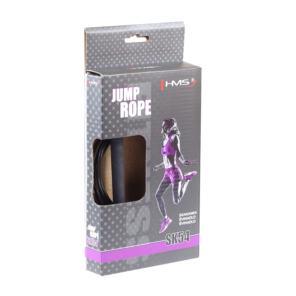 SK54 HMS to skakanka aluminiowa przeznaczona do ćwiczeń ogólnorozwojowych. Zapewnia poprawę formy fizycznej, spalenie tkanki tłuszczowej oraz kształtowanie mięśni pośladków, ud i łydek.