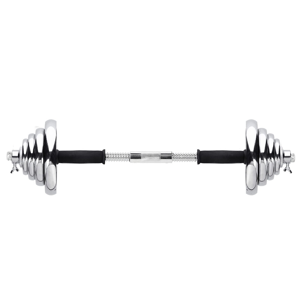 Wysokiej jakości chromowana stal daje gwarancje dużej wytrzymałości, a co za tym idzie możliwości użytkowania sprzętu przez lata. Zaciski oraz idealnie dopasowana średnica otworu talerzy, ułatwiają szybką zmianę obciążenia, a zarazem pewne i stałe ułożenie na gryfie. Zaciski są gwintowe, jednak posiadają dodatkowe wzmocnienie, w postaci dokręcanej śruby. Dzięki temu, obciążenie w żaden sposób nie przesuwa się podczas ćwiczeń.