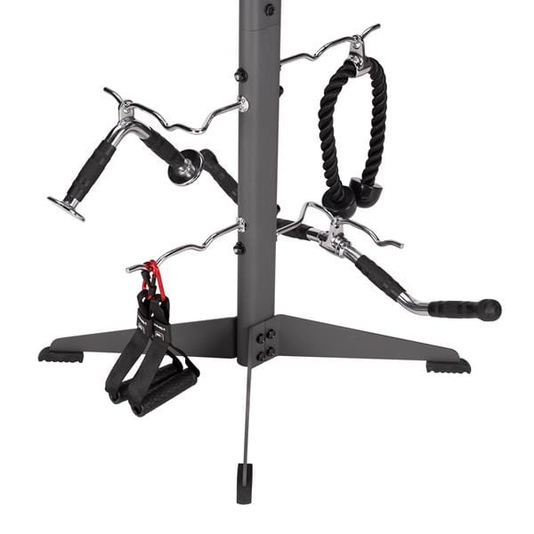 STR33 to stojak, który ma szerokie nogi w dolnej części, co zapewnia mu dużą stabilność i wytrzymałość. Stojak jest wyposażony w osiem niezależnych haków, na których możesz wieszać różne akcesoria fitness, takie jak skakanki, uchwyty czy sznury. Każdy hak wytrzyma maksymalne obciążenie do 30 kg, więc nie musisz się martwić o uszkodzenie stojaka lub sprzętu.