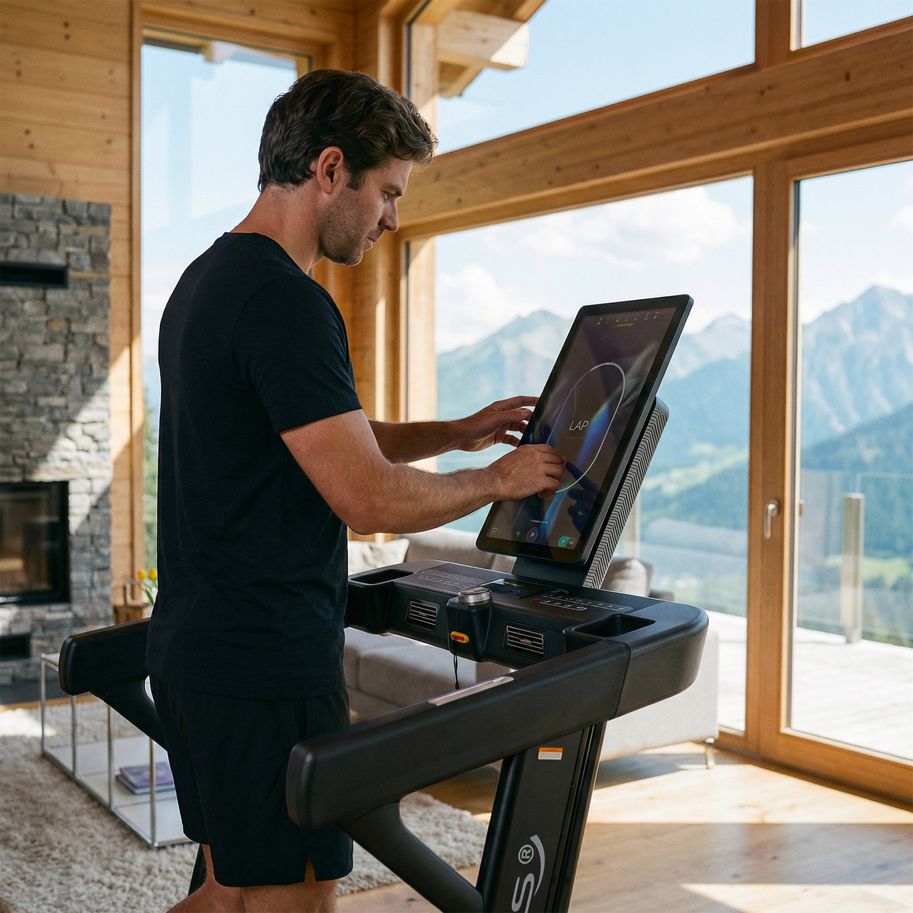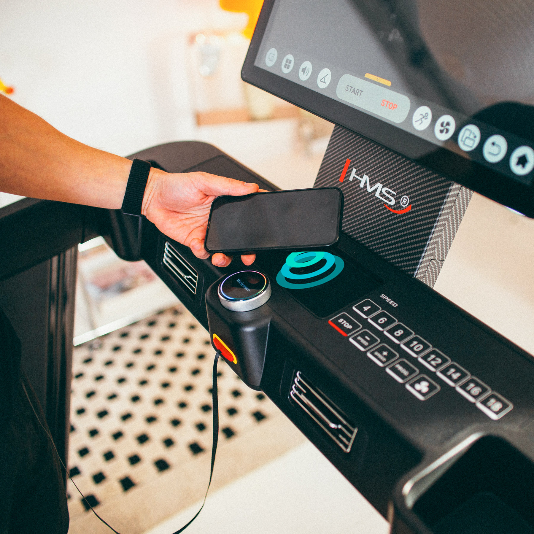 Dzięki obsłudze AirPlay, Miracast oraz USB Cast możliwa jest bezprzewodowa transmisja obrazu z telefonu lub tabletu bezpośrednio na 21-calowy ekran bieżni. Dodatkowo urządzenie łączy się z siecią Wi-Fi i umożliwia stworzenie indywidualnego profilu użytkownika, dzięki czemu dane treningowe są zapisywane w chmurze.