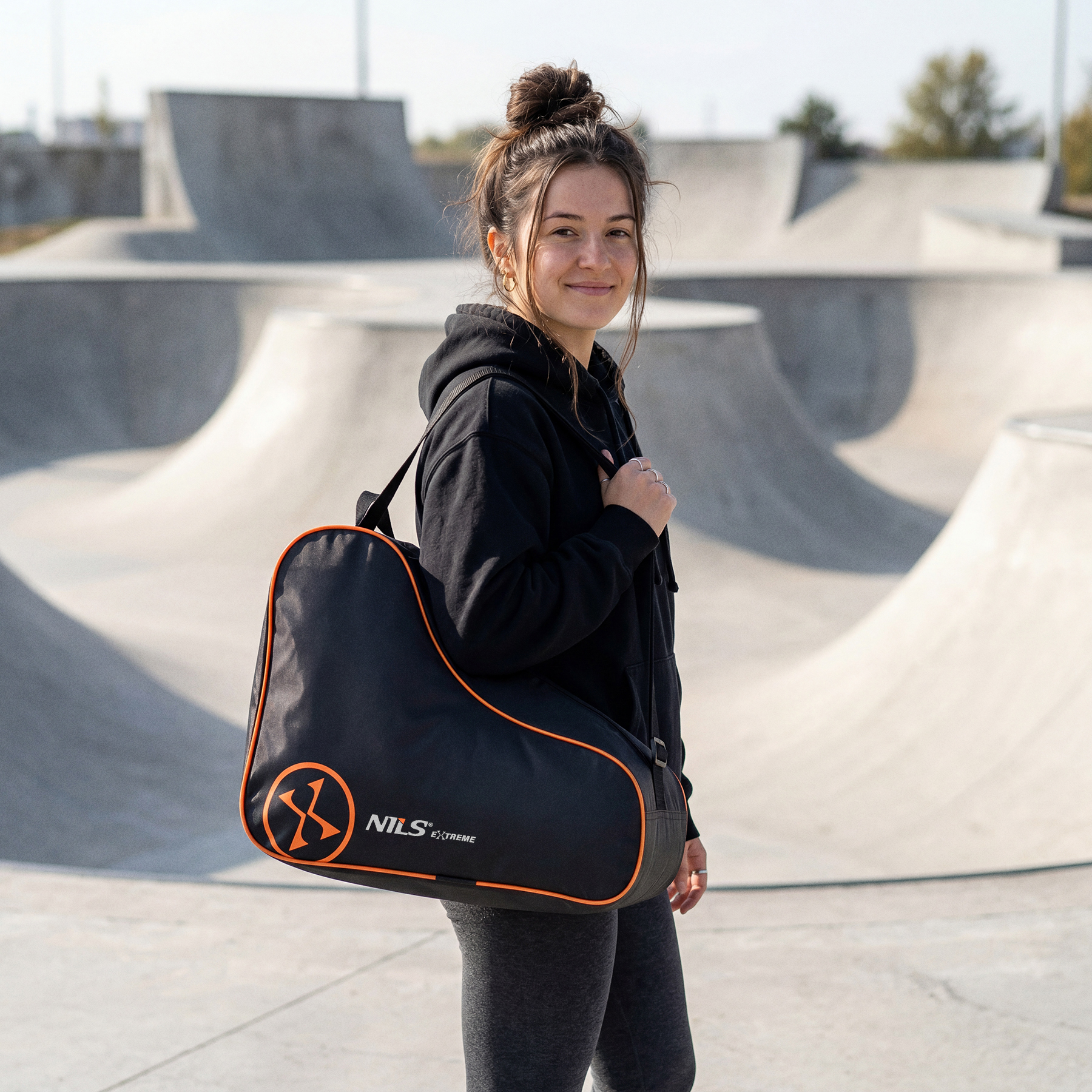 Torba pozwala zabrać rolki w jedno miejsce i uniknąć noszenia ich w rękach. To praktyczne rozwiązanie w drodze do parku, na trening lub na spontaniczną jazdę.