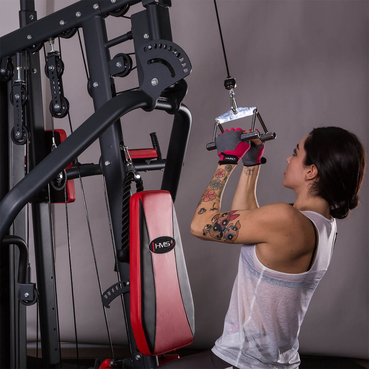 UW05 HMS to podwójny uchwyt, przeznaczony do treningu na wyciągu górnym i dolnym. Służy do ćwiczenia mięśni grzbietu, ale sprawdzi się również przy wykonywaniu ćwiczeń z połową sztangi ( druga połowa oparta o parkiet). Jej gryf idealnie wpasowuje się w środek uchwytu, co umożliwia swobodne wykonywania ćwiczenia wiosłowania połową sztangi w opadzie tułowia.