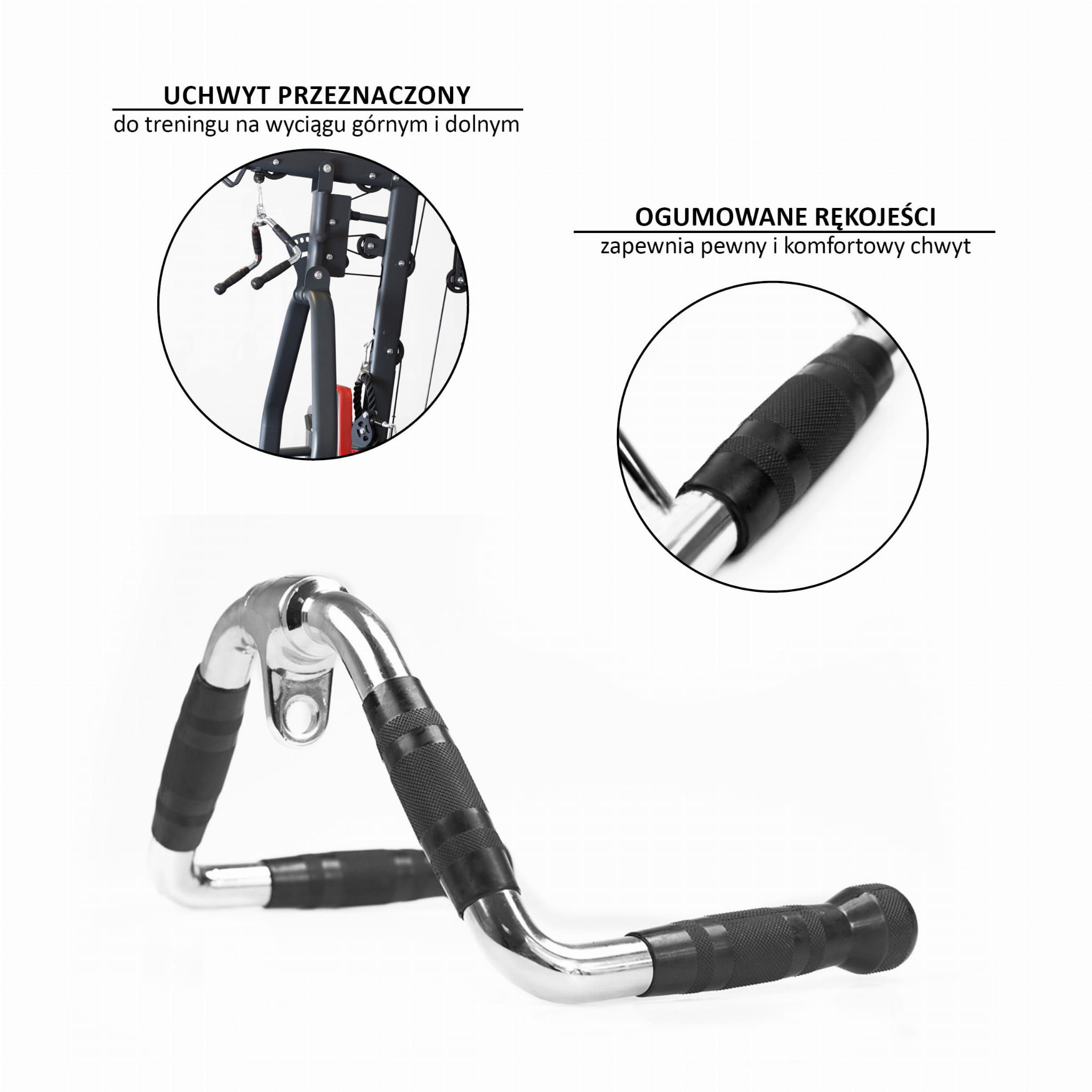 Rękojeści zewnętrzne ustawione są w chwyt neutralny. Dzięki temu w trakcie trwania ćwiczenia angażuje alternatywne przyczepy mięśniowe w stosunku do ćwiczeń na prostym chwycie. Ogumowane rękojeści pozwalają na pewny oraz komfortowy chwyt, co pozwoli skupić się na dokładnym wykonywaniu ćwiczeń.