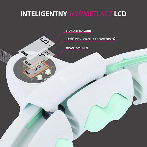 HHW06 wyposażony jest w duży wyświetlacz LCD, który pokazuje takie dane jak: czas treningu, ilość spalonych kalorii oraz ilość wykonanych powtórzeń (obrotów). Dzięki temu monitorowanie osiągnięć podczas treningów będzie znacznie prostsze.