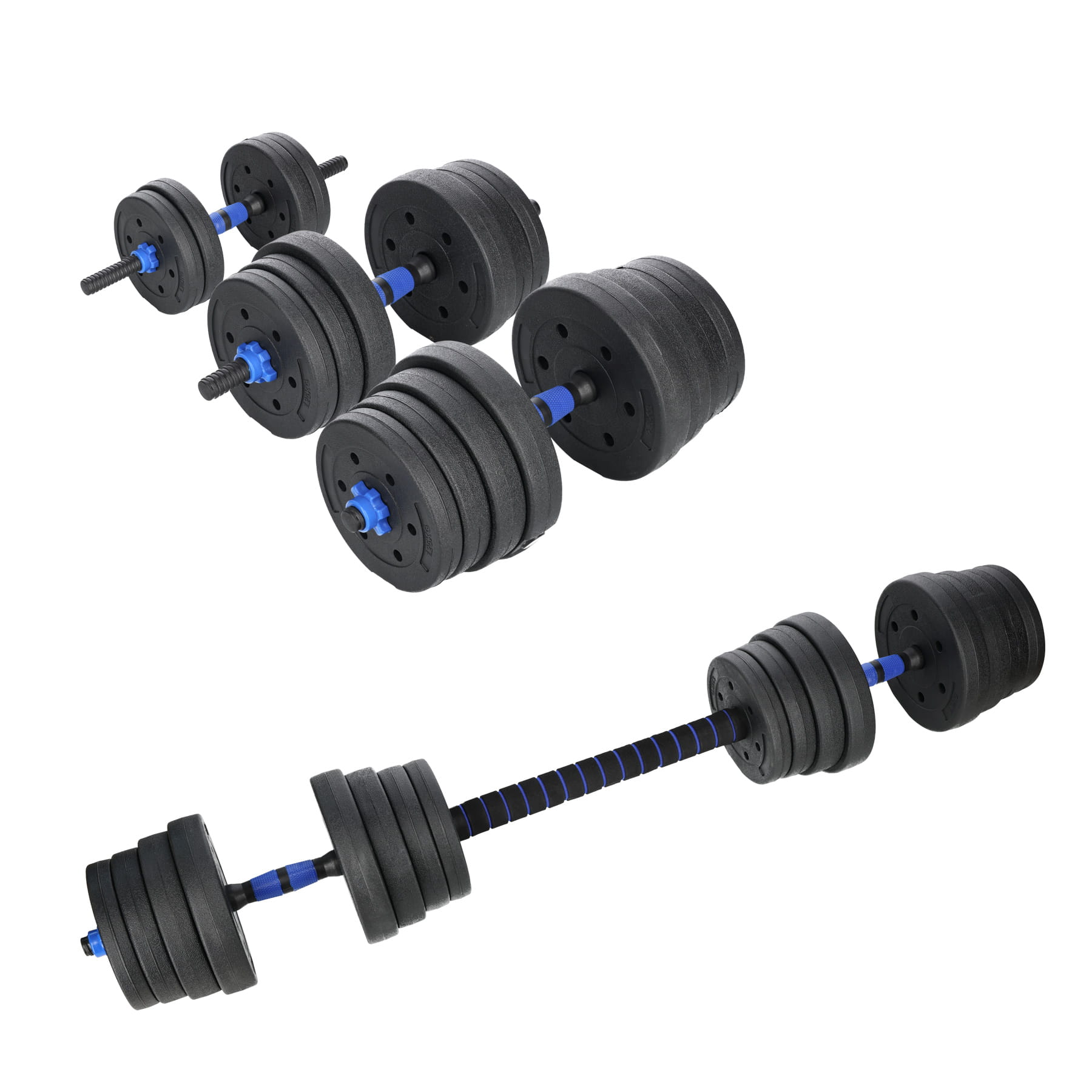 ZESTAW HANTLI Z REGULOWANYM CIĘŻAREM 30KG I MOŻLIWOŚCIĄ POŁĄCZENIA W SZTANGĘ
