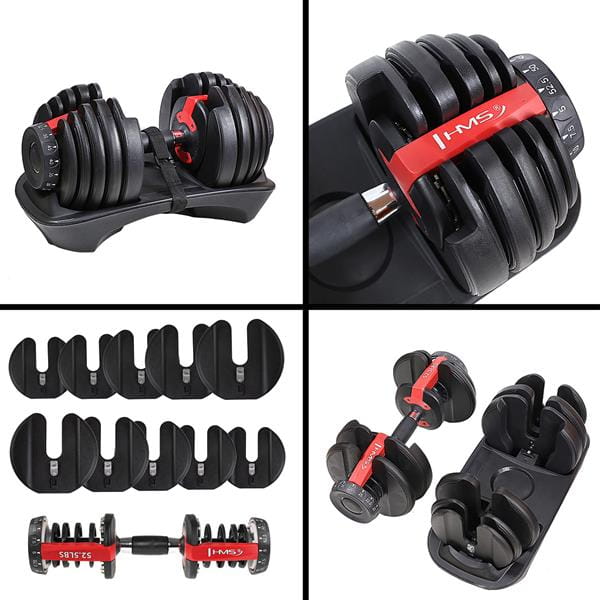 Sztangielka regulowana HMS SR52 to przyrząd będący idealnym rozwiązaniem dla osób ćwiczących w domu. Innowacyjny, talerzowy system montowania obciążeń umożliwia bardzo szybką i łatwą ich zmianę. W przeciwieństwie do uciążliwej zmiany talerzy w zwykłych hantlach, SR52 wystarczy odłożyć na podstawkę i ustawić pokrętłami pożądane obciążenie. Teraz gdy podniesiemy sztangielkę, będą do niej przymocowane talerze odpowiadające nowo ustawionemu obciążeniu. Sztangielka SR52 wykonana została z najwyższej jakości materiałów. Ergonomiczna, profilowana rękojeść pokryta materiałem antypoślizgowym pozwoli uzyskać pewny i mocny chwyt. STR10 HMS PREMIUM to stalowy stojak na sztangielki regulowane. Jego ergonomiczny kształt pozwala na komfortowe podniesienie i odłożenie sztangielek. Paski zamontowane w stojaku oraz wyprofilowane końcówki miejsca na obciążenie zapobiegają zsunięciu się hantli. STR10 to świetne rozwiązanie dla posiadaczy sztangielek regulowanych.