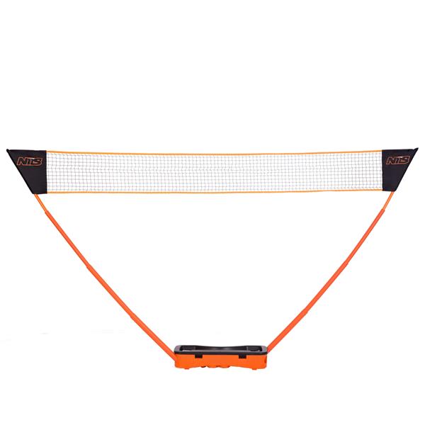 Zestaw znajduje się w plastikowym pudełku, które służy także jako podstawa siatki. Konstrukcja opiera się na dwóch słupkach teleskopowych. Dla optymalnego rozciągnięcia siatkę do badmintona należy umieścić na wysokości 155 cm.